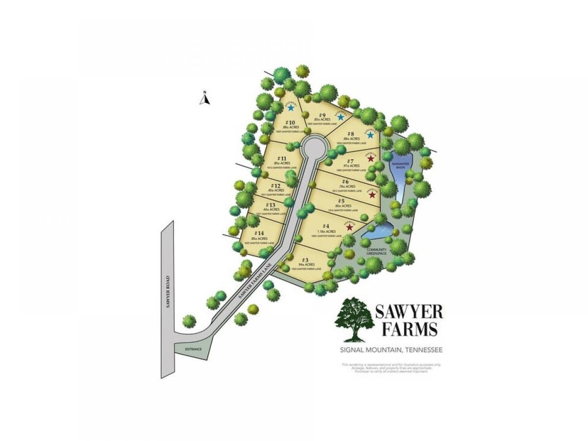 Welcome to Sawyer Farms, Signal Mountain#039;s NEWEST boutique community. This exclusive neighborhood presents luxury and serenity on a cul-de-sac lane. Sawyer Farms offers a desirable Signal Mountain address, Hamilton County benefits, EPB Fiber Optics, and no city taxes. Lot 6 is a .78plusmn; ACRE future home site with gently-rolling topography, adding character and dimension. This PREMIUM lot is approved for your home up to 4 bedrooms and adjoins the community greenspace for added privacy. (Inquire for a complete list of the twelve homesites.) Local Frederick Brothers Construction is the Sawyer Farms Preferred Home Builder for their craftsmanship, expertise, and commitment to honoring the Signal Mountain lifestyle. Sawyer Farms residents will enjoy local amenities including The Bread Basket, Ace Hardware, Pumpkin Patch Playground, and Signal Mountain Town Center with Pruett#039;s Market and dining. Easy 15-minute commute to award-winning Signal Mountain Middle/High School and Nolan Elementary. Embrace the East TN outdoor lifestyle within 15 minutes of Falling Water Falls, North Chickamauga Creek Gorge State Park, Rainbow Lake, and Edward#039;s Point. Hixson#039;s shopping and entertainment options are an easy 20 minute drive. Just 25 minutes to Downtown Chattanooga#039;s restaurants, medical facilities, and cultural attractions. Centrally-located Chattanooga is easily accessible to Nashville, Knoxville, Atlanta, Birmingham and beyond. Build your dream home in the refined, mountain community of SAWYER FARMS. (Any and all property lines on photos are simulated and are approximate. Property Owner holds an Active TN Real Estate License. Buyer is responsible to do their due diligence to verify that all information is correct, accurate and for obtaining any and all restrictions for the property deemed important to Buyer.)