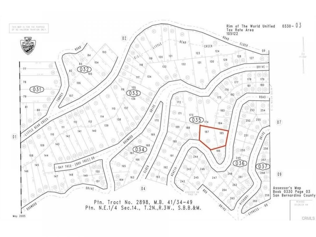 Nestled in a peaceful and heavily wooded area, these two combined lots offer stunning views that reach all the way to the high desert. Located on Acacia Road, utilities such as power and water are nearby. Enjoy the quiet, private setting just 5 minutes from the beloved Cedar Glen Malt Shop and only 10 minutes from the shops and dining at Lake Arrowhead Village. Great for outdoor enthusiasts! Please note: the lots feature sloped terrain, and Acacia Road is an unmaintained dirt road and septic system would be required for any future development. Buyers are encouraged to confirm connection distances and costs with SoCal Edison and the San Bernardino County Special Services District. Check out the photos and plot map and be sure to visit the property in person to see its full potential!