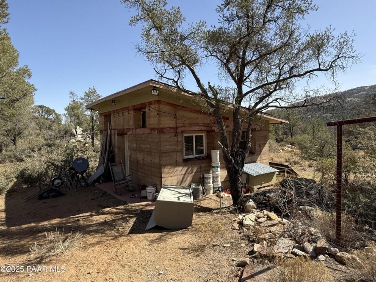 Gently sloping 18.98 Acres in the gated Hyland Park Ranches subdivision just west of Peeples Valley (Highway 89). Hyland Park is nestled between state land NE and SW, amongst pristine juniper and pinion pine forest with scrub oak and manzanita brush at an elevation of 4900#039; (NWC) to 4800#039; (SEC). There is an unfinished #039;#039;off grid#039;#039; Rammed Earth tiny home includes: solar (needs new batteries), kitchen cabinets and appliances, wood burning stove, upper loft, bathroom and water heater. Next to this structure is the water well (425#039; well depth; 22#039; static water level). There is a 1500 gal concrete septic vault. Privacy and security for an #039;#039;Off Grid#039;#039; site built only (No Manufactured) home. Limited deed restrictions (CCRS in documents tab) allow for great flexibility.