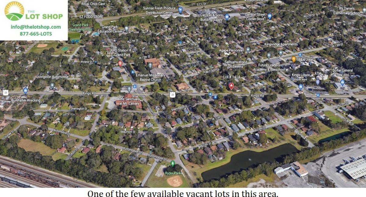 HUGE COMMERCIAL POTENTIAL WITH THIS ONE!! (With approved variance/ it is currently zoned residential) Any filings would be SOLE responsibility of purchaser; this is simply a vision of highest and best use. Check out other parcels along Kings Road to see a number of commercial variances already granted. Here’s a link to Zillow – there are very few vacant lots available in this area! Priced to move 50' x 95' .11-Acre Lot with Kings Road Frontage, with access to electric and city services. This property is rated as FEMA Flood Zone X - An area of Minimal Flood Hazard! Jacksonville is a great place to live, and the largest city by area in the contiguous United States. Jax, as locals call it, is perfectly located in Northeast Florida. Jacksonville has more than 840 square miles – (making it the largest city by landmass in the Continental or contiguous USA).The longest stretch of the St. Johns River runs through Duval County – and YES, the river runs from south to north and NO, it is not the only river that does.Jacksonville boasts the largest urban park system in the nation, it is 4x the size of the island of Manhattan! 80,000 acres of parks, including 7 State Parks, 2 National Parks, a National Preserve, 400 City Parks and Gardens and an Arboretum. The Timucuan Ecological and Historical Preserve covers 46,000 acres.It's Always Sunny . . . in Jax. We get 270 average days of sunshine per year!Jax is Florida’s youngest city with an average age of 36 - the state of Florida average age is 42.We are home to 1,100 miles of shoreline, more than any other city in the state, not to mention 22 miles of white-sandy beaches! Explore Northeast Florida’s unique ecosystem by hiking or biking along miles of designated nature trails, where you may spot one of hundreds of local bird species. Escape the everyday by spending an evening camping under the stars in one of Jacksonville's exquisite parks. Take advantage of this amazing wholesale price before it’s gone, this lot is priced to sell!! Disclosure: Appraiser calculations provide for approx. 50’ x 95’ .11-acre lot. A legal survey would be needed to determine the actual area. Contact the County to check the current zoning information for the specific parcel that you are interested in, as there could be changes to the regulations and/or use permits. Please contact the City of Jacksonville Planning and Development Department for questions regarding zoning and improvements. Folks Huxford, Chief (904) 255-7829 or FHuxford@coj.net ALL prior year taxes cleared by SELLER Warranty Deed Provided at closing. Link to My Neighborhood Map Sanitation Company: CITYGarbage Pickup: TUESDAYYard Waste Pickup: MONDAYRecycle Pickup: MONDAY - Next week and every other week afterwardsFlood Zone:NOT IN FLOOD ZONEElementary School: GEORGE W CARVER ELEMENTARY2854 45TH ST W 32209, #158Middle School: MATTHEW GILBERT MIDDLE1424 FRANKLIN ST 32206, #146High School: WILLIAM M RAINES HIGH3663 RAINES AVE 32209, #165 TheLotShop.com helps you find Florida lots land fast. Search for land, find a lot you love and close the deal right on your mobile device! Select lots offer our no qualifying, guaranteed finance option to allow you to diversify your real estate portfolio at wholesale prices! Search by Map, County, Features, Uses (Tiny Home, Manufactured Home, Waterfront, etc.) on our Advanced Search Page! Secure your FL land ownership dream today, buying property has never been this easy they aren't making any more land!