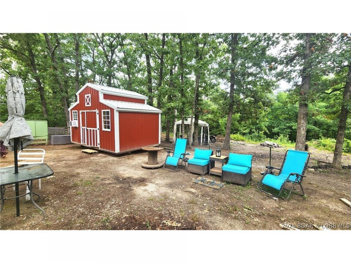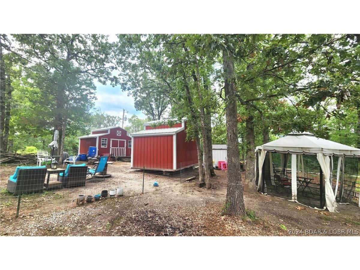 Welcome to this private retreat sitting atop a quiet ridgetop. This unique parcel of land offers a perfect blend of seclusion & convenience, with breathtaking views of the sunrise and sunset. The property features two 10x16 Caroline Barn cabins, providing a rustic, comfortable shelter for your getaway. Additionally, there's a 20' shipping container in place on leveled land, primed for transformation into a charming tiny house. Convenience meets off-grid living w/electric & fiber optic Wi-Fi, ensuring modern comforts amidst the peaceful wilderness. Two driveways for easy access to the property, enhancing its accessibility. Sit by the fire or stay protected in the screened in gazebo. Two storage sheds to keep your belongings are included as well. Just minutes from the Public Access in Gravois Mills to the Lake of the Ozarks & the International Raceway, this property offers the perfect balance of tranquility & recreational opportunities. Whether seeking a secluded retreat or an outdoor paradise, this property presents a rare opportunity to enjoy your own slice of paradise in a truly idyllic setting.