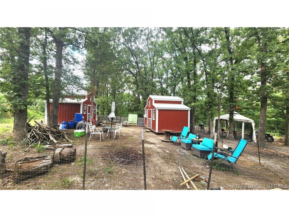 Welcome to this private retreat sitting atop a quiet ridgetop. This unique parcel of land offers a perfect blend of seclusion & convenience, with breathtaking views of the sunrise and sunset. The property features two 10x16 Caroline Barn cabins, providing a rustic, comfortable shelter for your getaway. Additionally, there's a 20' shipping container in place on leveled land, primed for transformation into a charming tiny house. Convenience meets off-grid living w/electric & fiber optic Wi-Fi, ensuring modern comforts amidst the peaceful wilderness. Two driveways for easy access to the property, enhancing its accessibility. Sit by the fire or stay protected in the screened in gazebo. Two storage sheds to keep your belongings are included as well. Just minutes from the Public Access in Gravois Mills to the Lake of the Ozarks & the International Raceway, this property offers the perfect balance of tranquility & recreational opportunities. Whether seeking a secluded retreat or an outdoor paradise, this property presents a rare opportunity to enjoy your own slice of paradise in a truly idyllic setting.