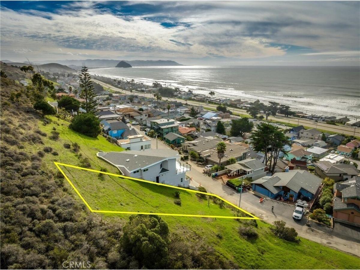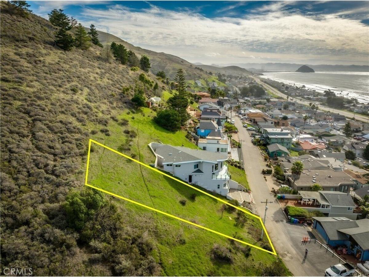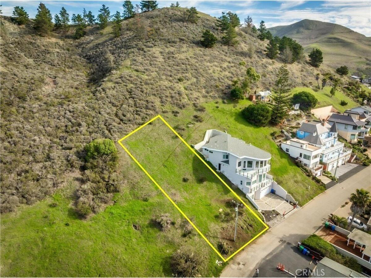 This large 6,100 sq. ft. upslope lot has remarkable views extending from north of the Cayucos Pier all the way to Morro Bay. The county has previously approved construction on this lot of a large house over 3,000 sq. ft, and in 2023 approved construction of a smaller three-story 1,781 sq. ft. house with a rooftop deck, that is featured in this listing. This lot is just 3/4 of a mile south of downtown Cayucos. Located on the upper street of a quiet neighborhood, this lot backs up to beautiful hillsides and open land that is unlikely to be developed in the future -- offering more privacy, serenity and wider costal views than most lots or homes in downtown Cayucos.