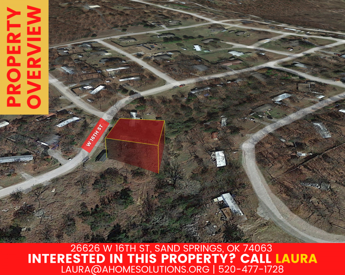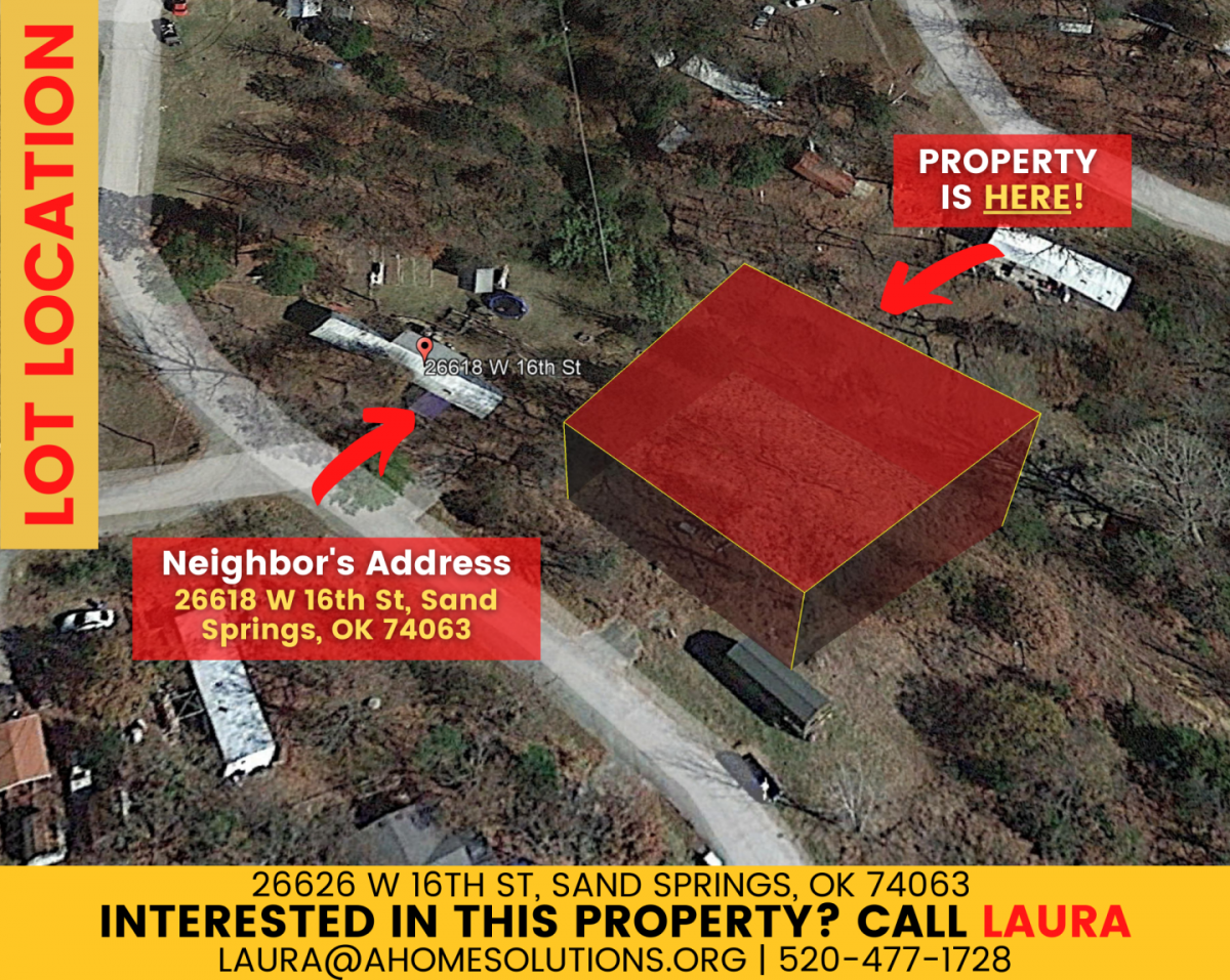 0.34-ac in Tulsa, OK to Build Your Perfect Family Home We sell real estate at discount wholesale prices! ********************** WHY BUY THIS PROPERTY? 1. Want to build your dream family home and get some peace and quiet while still being close to amenities? This 0.34-acre vacant land in Tulsa, OK might be the one you are looking for. PLUS! This vacant land is just 15 minutes away from Shell Creek Lake and Keystone Lake. 2. Water and Sewer utilities are available in the area. Allows Mobile Homes! 3. Buy today for just $9,900 cash or avail of our Seller Financing Option with $1,000 down as low as $299 monthly payments ********************** Community Details: You should know, the citizens of Sand Springs showcase southern hospitality at a different level. Don't miss the opportunity to own this amazing land that has everything one can ask for! It is an excellent town to live in with downtown being just 25 minutes away. You are close to a bigger city, yet far enough away to be free of the city life. You’re a phone call away from beginning a new chapter of your life in this exciting city! Contact Laura TODAY for details to make an offer. ********************** PROPERTY USE: - Single Family Homes - Modular Homes with Foundation - Mobile Homes **************************** PROPERTY INFORMATION: - Lot Type – Vacant Land - Sale Price - $9,900 - State – OK - County - Tulsa - Assessor's Parcel Number - 57449900742410 - Property Address – 26626 W 16th St, Sand Springs, OK 74063 - Size - Acre(s) – 0.34 - Road Access – Paved - Electricity – at the street - Water – city - Sewer – city **************************** HOW TO ACCESS: To visit the parcel, put the address 26626 W 16th St, Sand Springs on Google Maps, it will take you right to the property. You may also visit the exact address in person anytime and there is no need for an appointment. **************************** POPULAR ATTRACTIONS: This property is in a Great Location! With lots of easy access to numerous of Tulsa's amenities, since it’s only approximately 20 minutes away! Tulsa is very lucky to have the Philbrook Art Museum in its backyard! The exhibits that are housed here are Amazing top-notch. You can see everything from O'Keeffe's to Monets to Rembrandt’s Art in the fanatics Art collection. You’ll also gain exposure to artists you may not be very familiar with like Ufer and Dole Reed. The Museum also hosts a variety of events festivals during various seasons throughout the year. PLUS! Oneok Field is a great stadium in downtown Tulsa. You’ll love watching the Drillers baseball games Roughneck matches there. One of the best features of the stadium is the view of the Tulsa city skyline. You can enjoy this special treat if you sit on the north side of the stadium. Plus, there are family features such as the lawn in the outfield the splash zone where young kids can play cool off! **************************** PURCHASE OPTIONS: You can purchase this land for $9,900 cash or $1,000 down with low $299 monthly payments **************************** GOT QUESTIONS? WE HAVE ANSWERS! - Call/Email Laura @ 520-477-1728, laura@ahomesolutions.org. - We may have other properties at bargain prices available. All you have to do is ask! - Don’t hesitate! Connect with us today while this incredible deal is still Available! **************************** DISCLAIMER: Buyer must verify work with County to know what can can't be done with the land, obtain proper permits if needed confirm the availability of any utilities needed/serviced on the lots. Seller makes no warranties or representations about the land, its condition, or what can be built on the parcel.