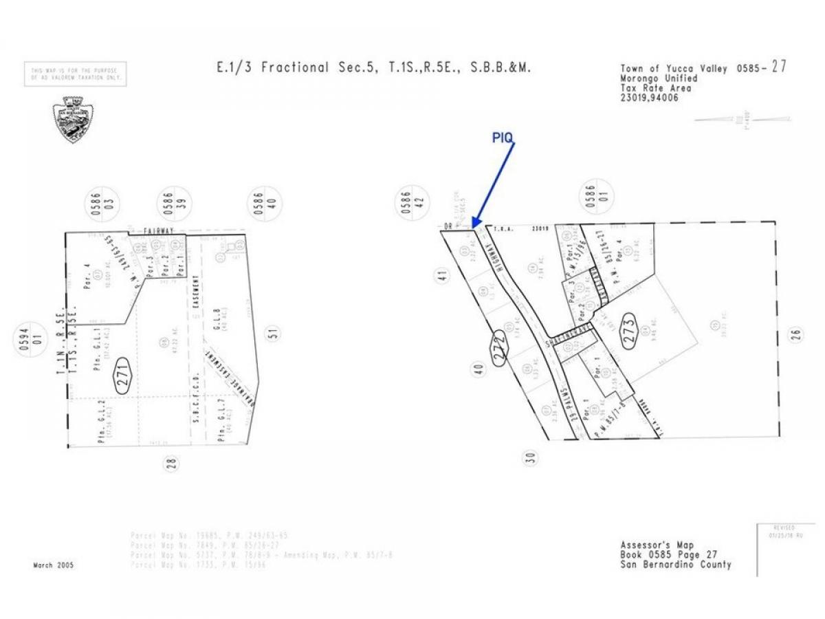 2.2 Acre, RS2 zoned parcel located on the west corner of the Hwy 62 amp; Fairway Dr intersection just as you come over the hill into Yucca Valley. Excellent views, great neighborhood and alternate access off of Fairway Dr make this parcel a great candidate for residential construction. Water amp; Power are served in the area by Hi-Desert Water District amp; SoCal Edison, respectively. It is always a good idea to confirm connect costs and distances with each utility company. This parcel would also be a great addition for property owners on the street above for larger parcel size or alternate access.