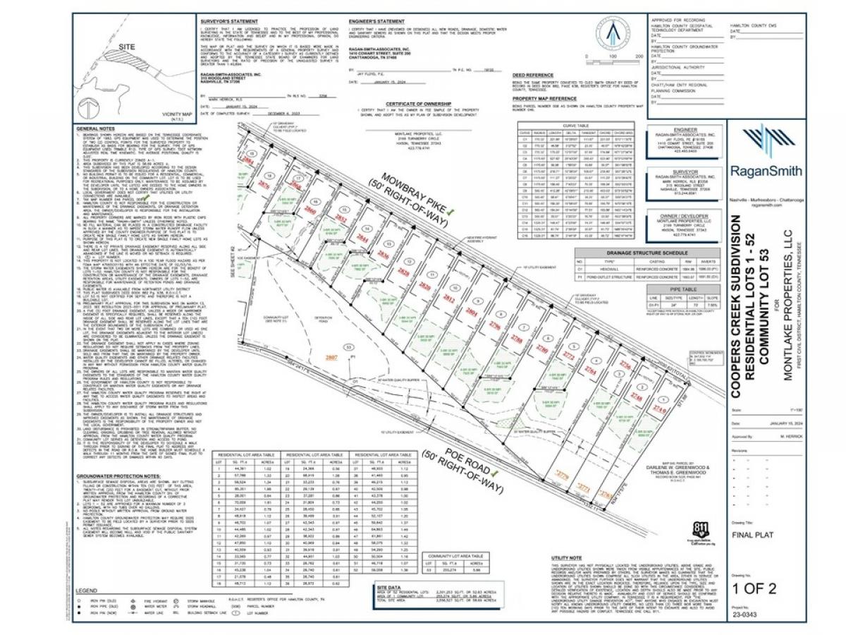 COUNTRY: PURE AND SIMPLE!Welcome to Coopers Creek, Soddy Daisy's newest residential neighborhood with 52 lots ranging from .5 acres to 1.96 acres. This neighborhood is located on beautiful Mowbray Mountain, and not far from the Montlake Golf Community. If you're looking for a little space around you, and you want the quiet life that mountain living offers, call us today for all the details. The infrastructure is in place to build you're dream home and site clearing is included in the price of the lot. There will be spec houses started in the very near future, but you will have the opportunity to choose a lot, build on it now or at a later date. We have house plans to choose from and will build, but if you have a dream plan or builder, it will have to be approved by the developer. Most of the lots will accommodate an inground pool, and the community will feature a covered pavilion for neighborhood activities. A beautiful mountain neighborhood in the works. Don't wait to be a part of it.