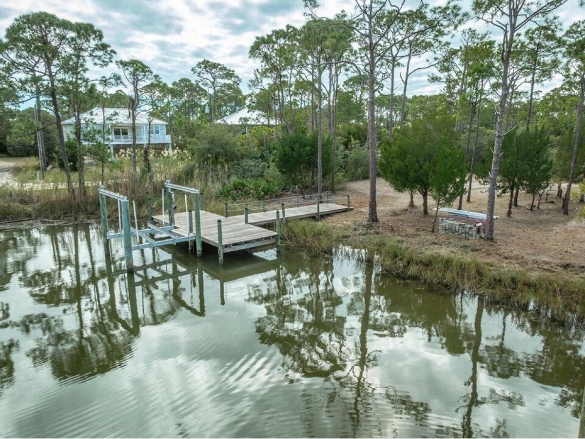 Canal front corner lot with a boat dock and boat lift, near the entrance to the Plantation offers a perfect blend of water access amp; convenience. St. George Island#039;s pet friendly beaches and easy golf cart ride to restaurants, beach and shops make it an idea location for relaxation, boating and recreation! The dock does not have water or electricity hooked up.