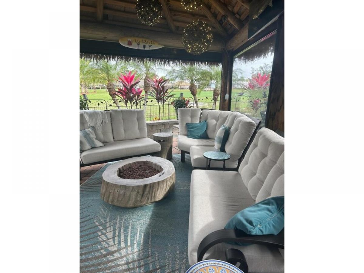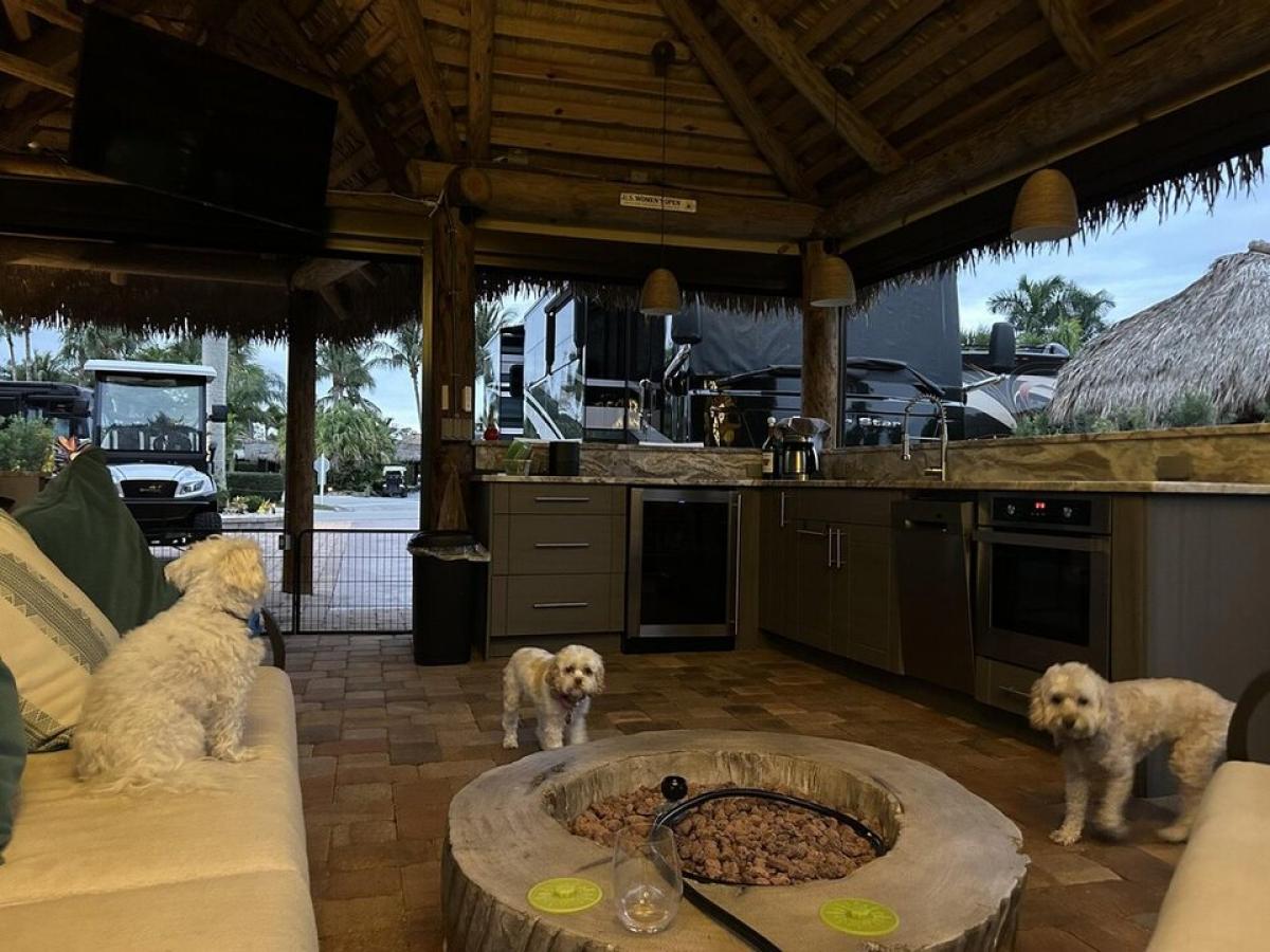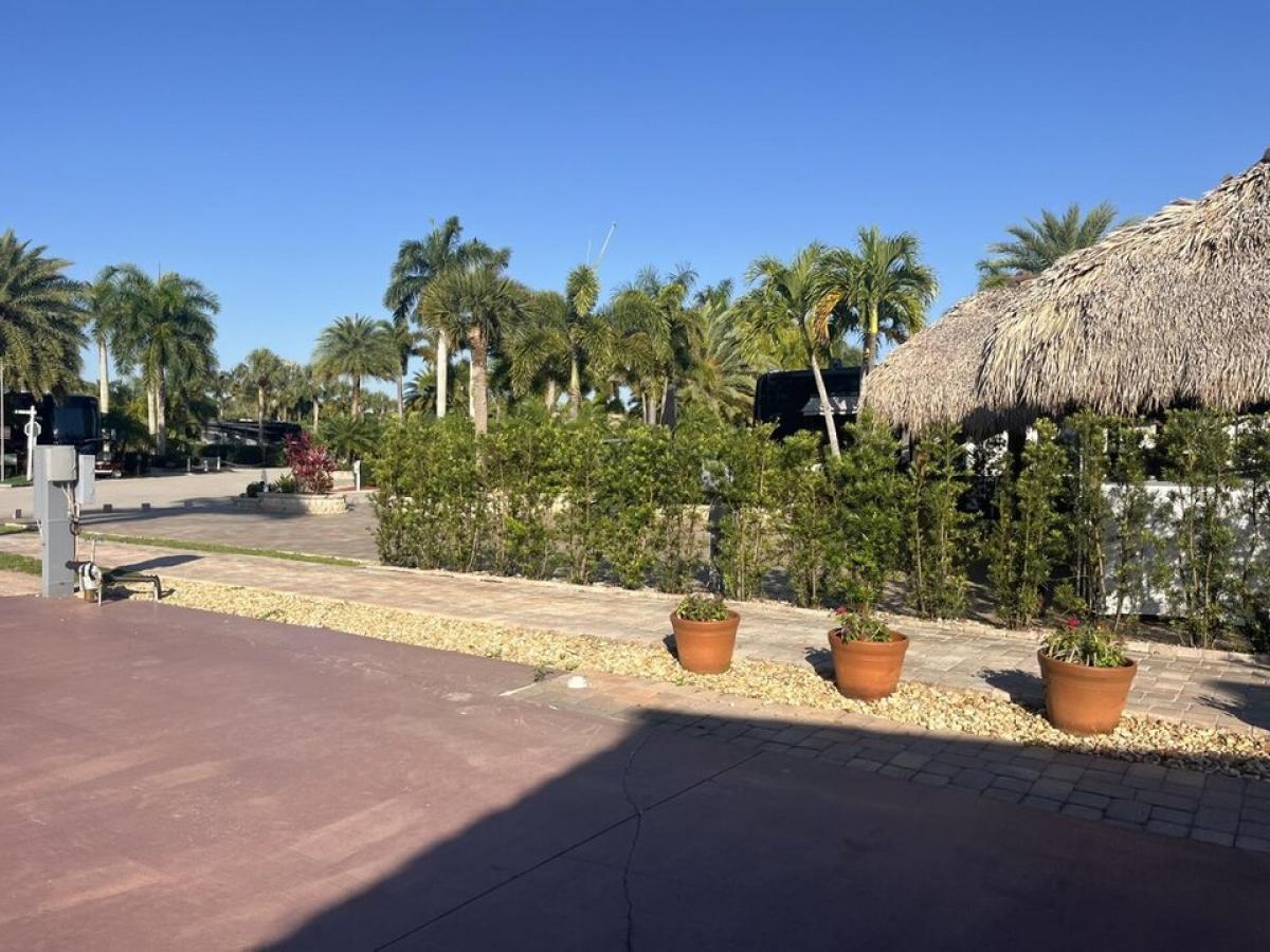 Beautifully landscaped with mature trees for privacy, new synthetic Tiki with electric shades . Enjoy living on the golf course . Kitchen with granite countertops , oven and refrigerator for beverages, with lots of room for entertaining . Motorcoach Resort Class A Resort very active community, Pickle ball, bocce ball, tennis, darts, bike club, Yoga, water aerobics, Social hour on Friday Nights during season , live music and much more more