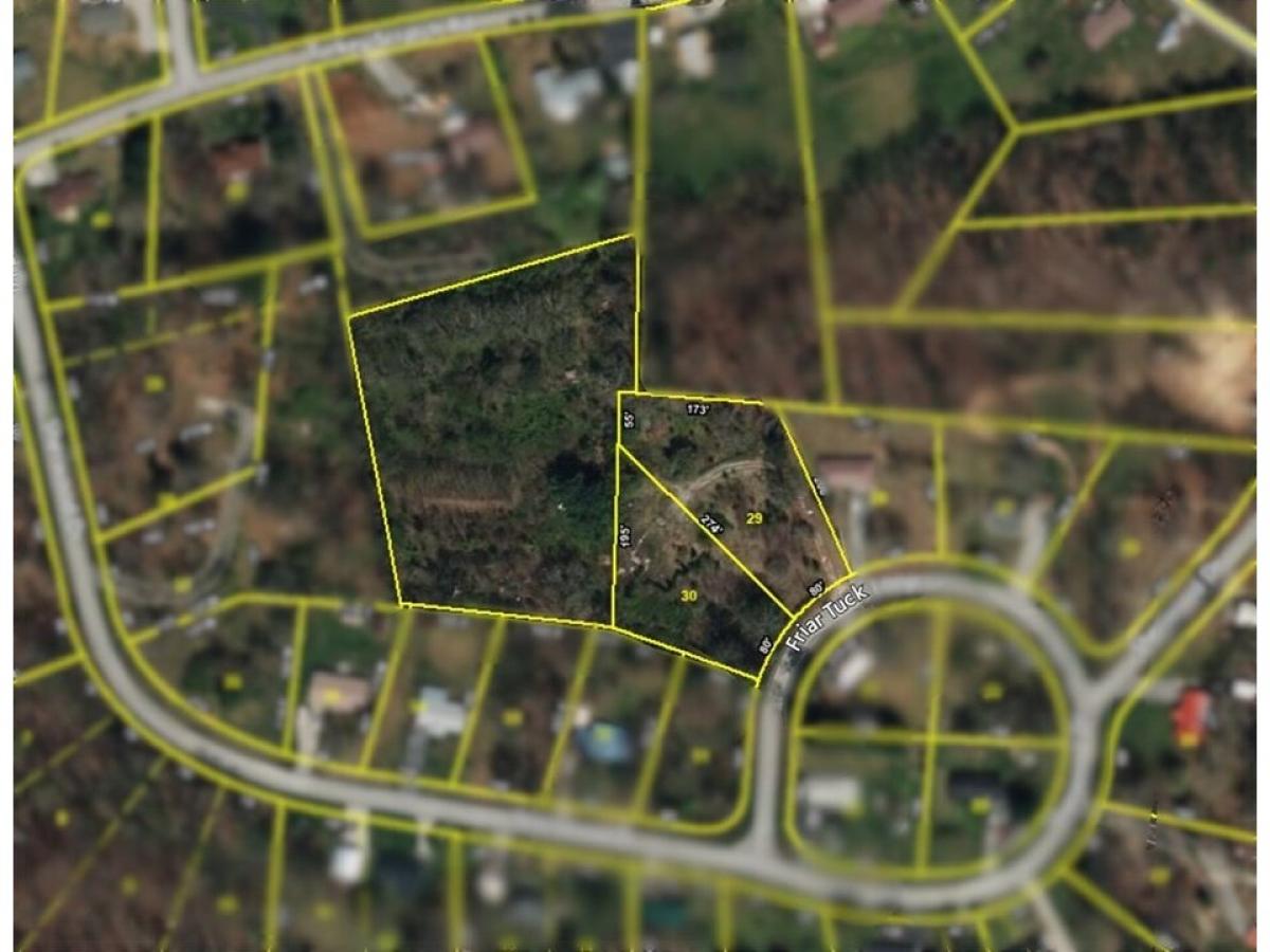 The opportunities are endless with this parcel. 3 lots selling as ONE for a total of 3.5+/- acres! This slightly wooded parcel offers privacy within city limits. Mobile home on the property has been moved, but gravel driveway, electric, and septic tank are still in place. Build on to the existing foundation or start fresh and run sewer lines. Parcel contains lot 29 and 30 off of Friar Tuck Loop and 284 Turkey Scratch Road. Restrictions do not apply to the 2.2 acres on the Turkey Scratch lot. Buyer to verify all info.