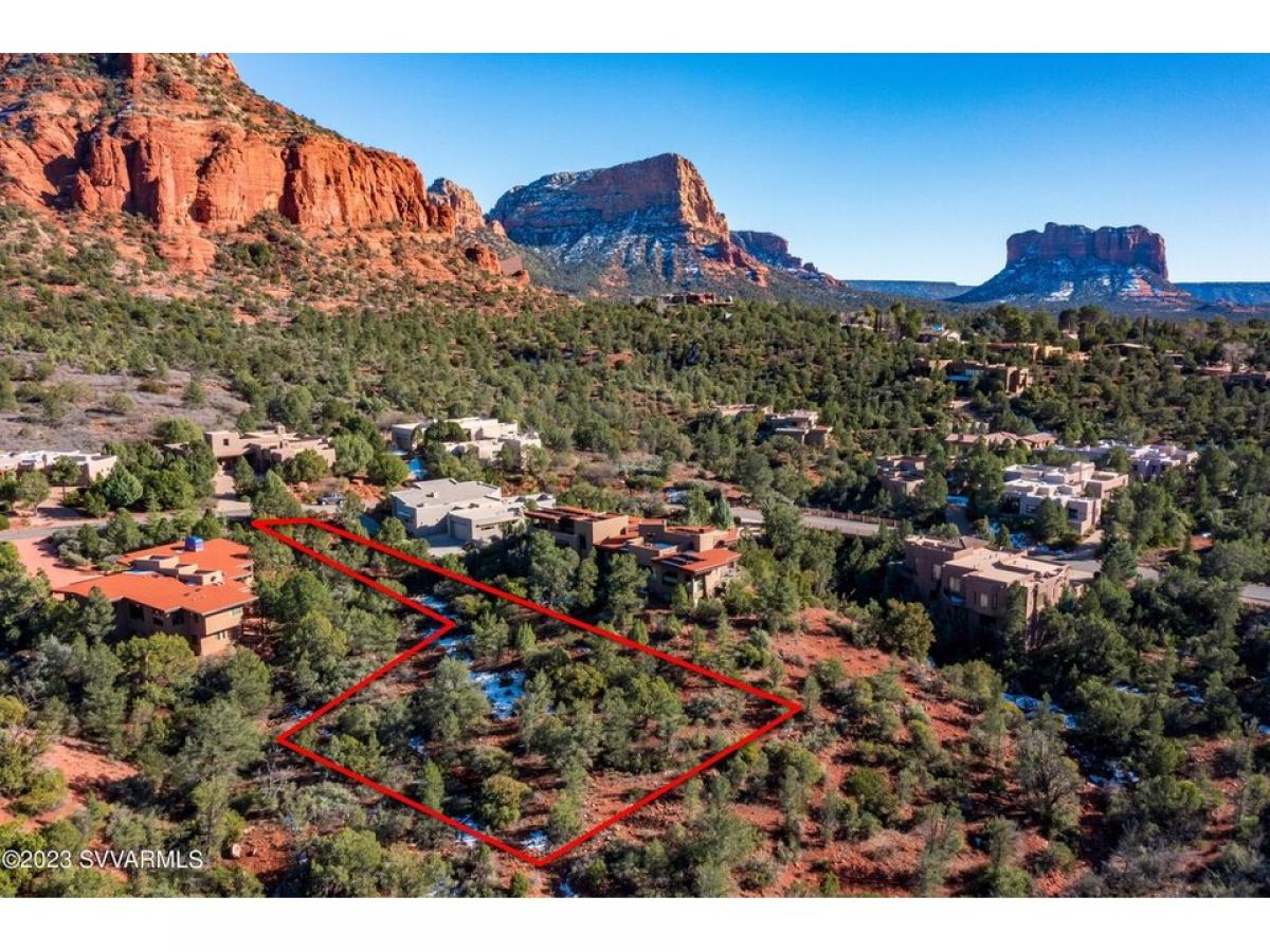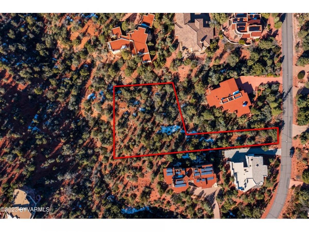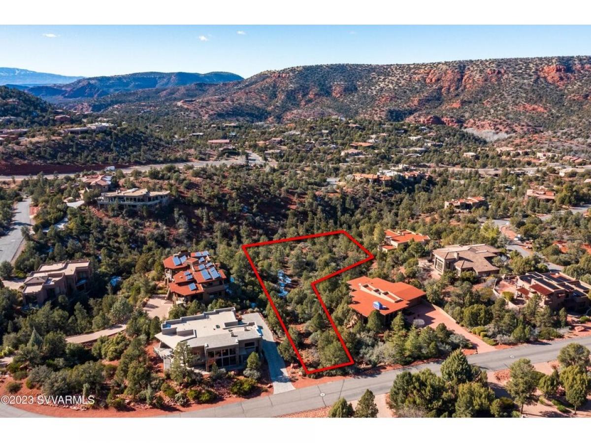 STOP THE CAR! *Rare* Flag-shaped lot located in one of Sedona#039;s prized communities--The Mystic Hills. Build your dream in a neighborhood where the entire Eastern border is shared with the Coconino National Forest! This .76-acre property has a calm, private meandering feel. The gentle sloping flag shape positions the future home with a spectacular unobstructed view of Elephant Rock and the Mogollon Rim. Mystic Hills offers a plethora of amenities, including a clubhouse, pool, tennis, pickleball, gym, and access to trails.One of the BEST parts of this opportunity is if you like the plans, this project is shovel-ready!!!Sellers are including the plans/designs that are already complete AND approved by the City of Sedona! Site plan, architectural plans, and of course, the survey!