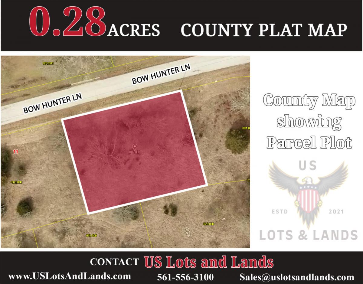 0.28ac Property in the Mark Twain National Forest Table Rock Lake Area ~~ Contact US Lots and Lands to learn more: 561-556-3100 - Sales@uslotsandlands.com ~~ WHY BUY?: #1. Only 15 minutes from Branson West shopping and restaurants. #2. Relish in the privacy serenity of the extra large lot #3. Multiple Purchase Options Available! Buy this STEAL Today for only $5,120 cash or finance with $3,000 down and $250 monthly payments. COMMUNITY DETAILS: Come live just a hop, skip and a jump away from Table Rock Lake! Lake Country Manor has super low monthly HOA dues and membership in the community include unlimited community water and sewer! Branson is within 40 minutes, Springfield only an hour and Joplin just under 2 hours. Plus this property is a short drive to world class dining, shows, golf, amusement parks, hiking biking, and a great nightlife in Branson by land and water! Connect with us today and begin enjoying the perks of the Lake Country Manor community! USAGE DETAILS: - Single Family Home PROPERTY DETAILS: - Lot Type - Land - Sale Price - $5,120 - State - Missouri - County - Stone - Assessor's Parcel Number - 10-1.0-11-002-003-002.000 - Property Usage - Single Family Home - Property Address - 0 Bow Hunter Ln, Lot #: 25, Galena, MO 65656 - Size - 0.28 Acre(s) - Road Access - Yes, Paved - Electricity - At the Street - Water - Public / County connections - Septic - Private ACCESS DETAILS: - Bow Hunter Ln is a paved road - Lot GPS Coordinates: 36.715912, -93.497150 - 233 Bow Hunter Ln is the address to the neighbors house, which is across the street POPULAR ATTRACTIONS: - Table Rock Lake, 12 minutes away - Great lake for families, that's a peaceful place to get away with clear waters and a great fishing area. - Talking Rocks Cavern, 24 minutes away - This was a good place to have some family fun, that's very informative. - James River Outfitters, 29 minutes away - There’s so much beautiful scenery here and it’s an excellent place to go for a swim on the James River. - Camp Tomahawk Tube Float and Water Adventure, 36 minutes away - Such a great place to let the water float you down river and have fun! - Branson City, 40 minutes away - A city filled with things to do from theaters and comedy shows to museums, cave adventures and a fantastic night life! PURCHASE OPTIONS: Buy this lot today with $3,000 down with low $250 monthly payments OR with $5,120 cash. GOT QUESTIONS? WE HAVE ANSWERS!: - Call/Email US Lots and Lands @ 561-556-3100, Sales@uslotsandlands.com. - We may have other properties at bargain prices available. All you have to do is ask! - Don’t hesitate! Connect with us today while this deal is still Available! DISCLAIMER: Buyer must verify work with County to know what can can't be done with the land, obtain proper permits if needed confirm the availability of any utilities needed/serviced on the lots. Seller makes no warranties or representations about the land, its condition, or what can be built on the parcel.