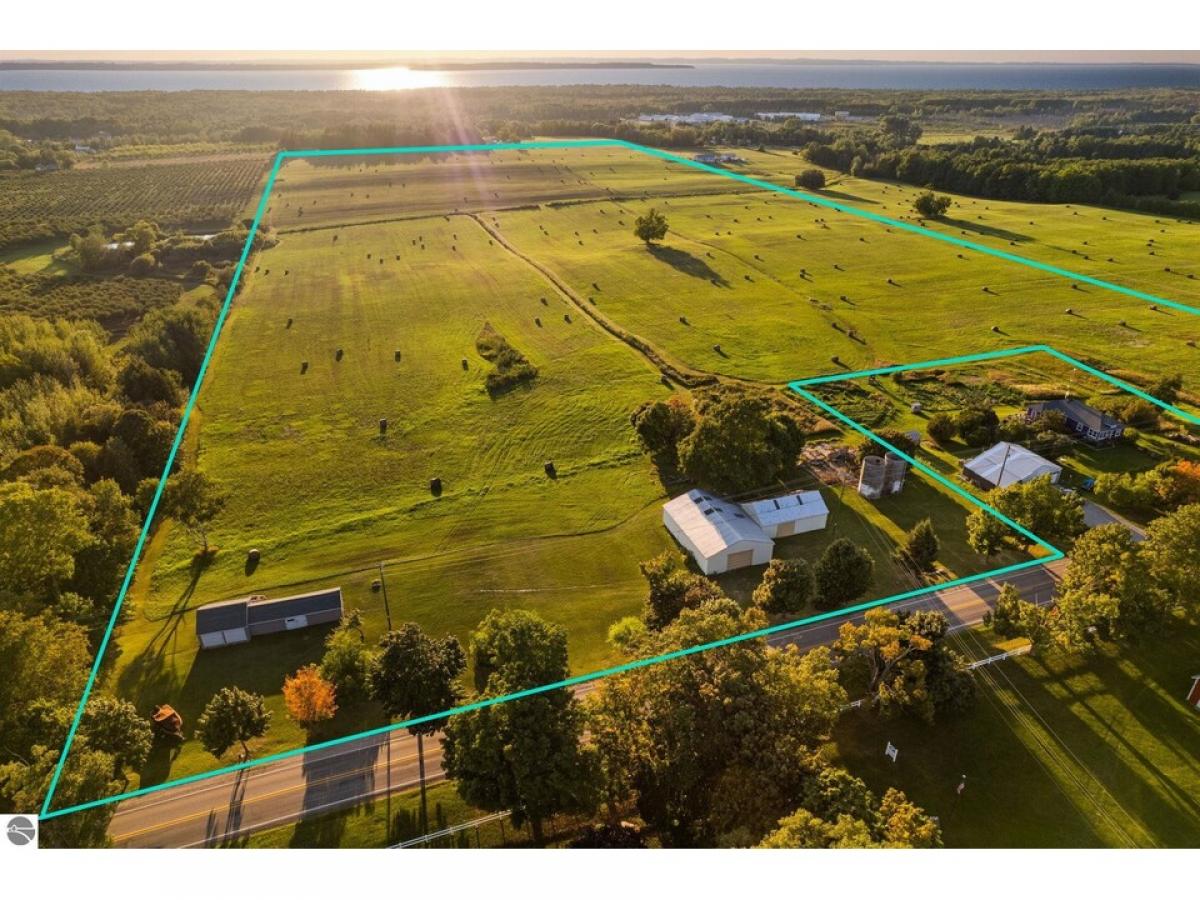 Sweeping panoramic East Bay, Grand Traverse Bay and Elk Lake views from this 65 acre parcel. Build your dream home overlooking miles of East Bay shoreline and Old Mission Peninsula. This amazing property can also be farmed or split for development. Property has a creek running through it and includes 3 outbuildings. This amount of acreage with East Bay views is truly a once in a lifetime opportunity.