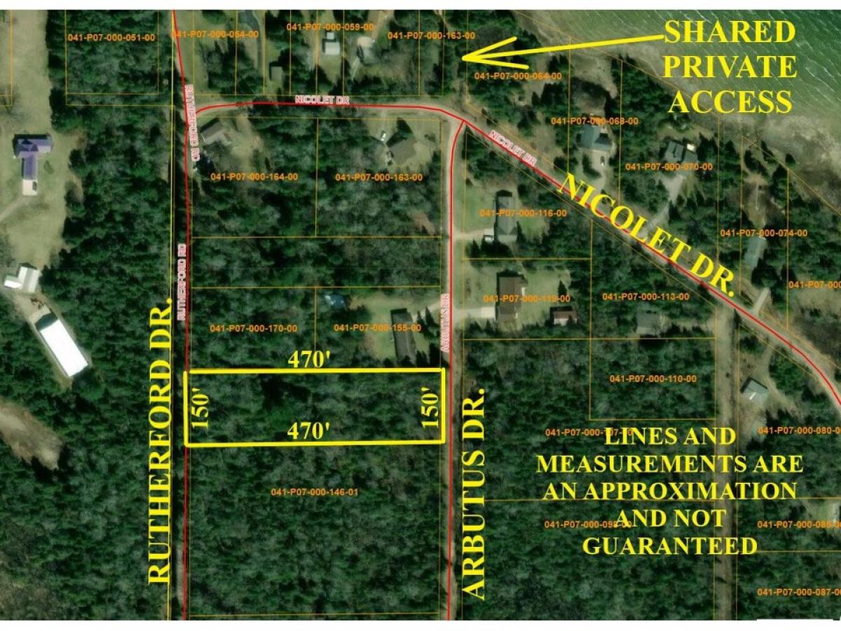 6 LOTS FOR SALE WITH LAKE HURON ACCESS BETWEEN CHEBOYGAN AND MACKNAW CITY. These 6 lots go from Arbutus Drive to Rutherford Rd. You can walk down the street to Lake Huron Access. Call today.