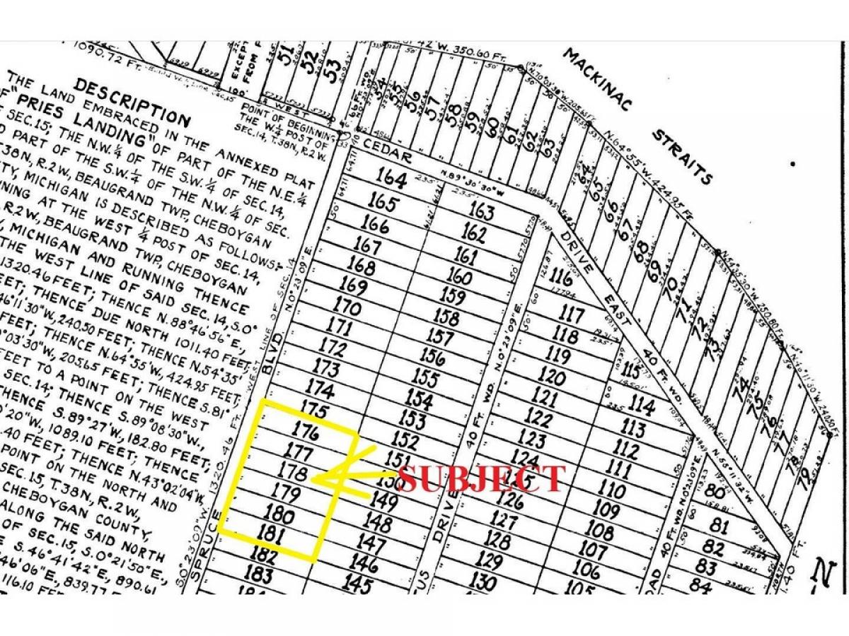 6 LOTS FOR SALE WITH LAKE HURON ACCESS BETWEEN CHEBOYGAN AND MACKNAW CITY. These 6 lots offer 300' off Rutherford Dr. and allow access Lake Huron just down the street. Great location. Call today.