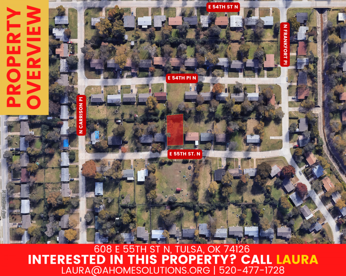 0.17ac Ready to build vacant land, 15 minutes from Tulsa, OK! This AMAZING Deal is a phone call away! ********************** Be the owner of this awesome 0.17-acre vacant lot just 15 minutes from downtown Tulsa, OK. This lot has been primed for your dream home, as all utilities are on the street. Plus! There’s easy access to Cherokee Gilcrease Expwy. And being only a few minutes away from downtown means you can easily enjoy the vibrant downtown nightlife. This vacant land is such in an amazing city! Convenient to shopping, dining, medical, and Oaks Country Club. There are plenty of trails for walking, running, and hiking along the Arkansas River too. We make purchasing this vacant land quick effortless for you with multiple and flexible purchase options. This property will be closed by a local title company is guaranteed to be free of all liens and encumbrances. The new owner will receive title insurance warranty deed. CALL or EMAIL LAURA NOW to know more at 520 477-1728 - laura@ahomesolutions.org **************************** PURCHASE OPTIONS: Cash Price: $11,900 – 41% cheaper compared to similar properties for sale in the area! Seller Financing: · Down Payment: $900 · Monthly Payments: $218 **************************** PROPERTY INFORMATION: - Lot Type – Vacant Land - State – OK - County - Tulsa - Assessor's Parcel Number - 44250021215080 - Zoning – RS-3 - Residential Single-Family - Permitted uses - Single-family homes, manufactured homes with special exceptions approved by the Board of Adjustment. - Property Address – 608 E 55th St N, Tulsa, OK 74126 - Size - Acre(s) – 0.17 - Road Access – Paved Road - Electricity – at the street - Water – city connections - Sewer – city connections **************************** PROPERTY LOCATION: Easily access this land via the paved E 55th St N road. You can use the exact address 608 E 55th St N or use this Google Maps Link to find the property’s exact location: https://goo.gl/maps/odUkWX98wEct5uUU8 **************************** NEARBY ATTRACTIONS: Philbrook Museum of Art - The exhibits that are housed in the Philbrook Museum of Art are Amazing top-notch. You can see everything from O'Keeffe's to Monets to Rembrandt’s Art in the fanatics Art collection. You’ll also gain exposure to artists you may not be very familiar with like Ufer and Dole Reed. The Museum also hosts a variety of events festivals during various seasons throughout the year. Woodward Park and Gardens - a peaceful and beautifully groomed park with a lovely little white bridge over a pond. A place to walk around with family or friends, gather your thoughts feed the squirrels. If you want to visit a pretty park where you can relax, this is the place to go. **************************** GOT QUESTIONS? WE HAVE ANSWERS! - Call/Email Laura @ 520-477-1728, laura@ahomesolutions.org. - We may have other properties at bargain prices available. All you have to do is ask! - Don’t hesitate! Connect with us today while this incredible deal is still Available! **************************** DISCLAIMER: Buyer must verify work with County to know what can can't be done with the land, obtain proper permits if needed confirm the availability of any utilities needed/serviced on the lots. The seller makes no warranties or representations about the land, its condition, or what can be built on the parcel.