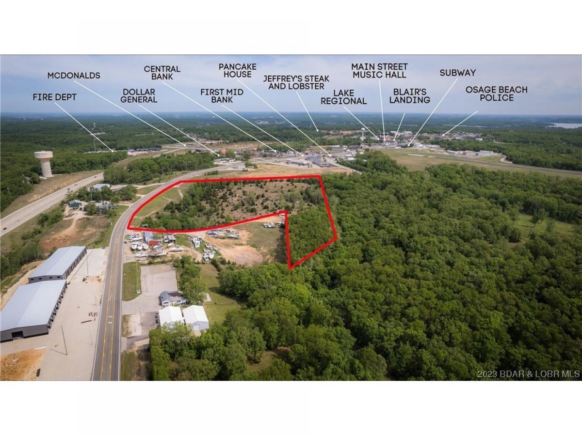 The last big piece of property left to purchase at the Lake of the Ozarks, in Osage Beach and off a double diamond interchange. Property is zoned C-1 High Density Commercial, comes with two access roads and a permitted billboard. The opportunities are limitless with this property. Storage units, Warehouse, Retail, Multi-Family - all of these project will work on this property. Property is priced cheaper per square foot than any other property you will find in Osage Beach currently for sale. Owner will look at offers to subdivide the property.
