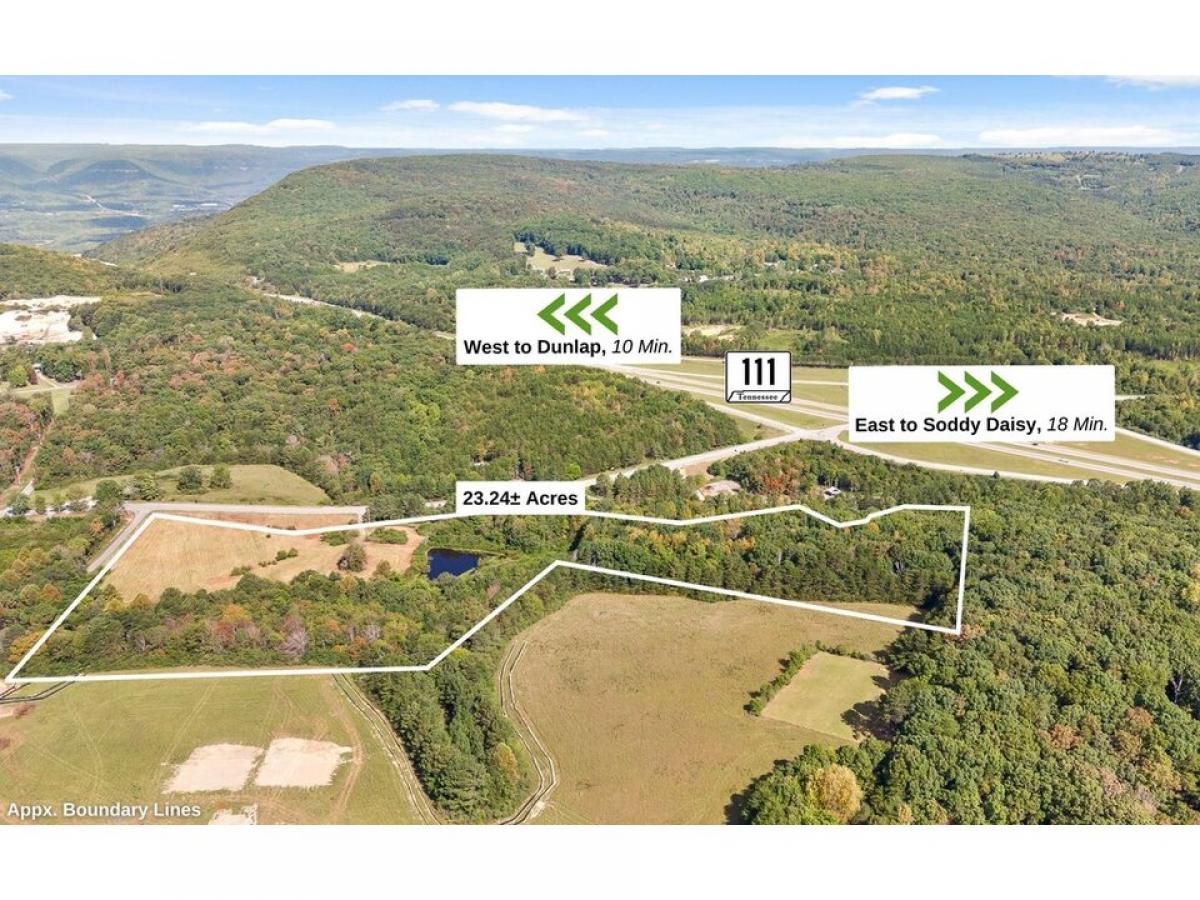 POND ON 23 +/- UNRESTRICTED ACRES! Peaceful Sequatchie County, TN invites you to experience country-living with all the convenience of town. Located just 1 minute from Hwy 111 and 10 minutes to Dunlap or Soddy Daisy - convenient to shopping and local eateries. The gravel drive leads to established PASTURE, with a private POND and mature hardwoods. BUILD your weekend retreat or dream home, with utilities readily available at the road. Add your dream vegetable garden, greenhouse, and start your flock: the Southern lifestyle awaits! County taxes only and NO state income tax in TN. Rural yet not remote: enjoy this property#039;s incredibly easy accessibility, just 30 minutes to Downtown Chattanooga. Schedule your private tour today! (Any and all property lines on photos are simulated and are approximate. Buyer is responsible to do their due diligence to verify that all information is correct, accurate, in addition to obtaining any and all Greenbelt Tax information or restrictions for the property that is deemed important to Buyer. Portion of Parcel 056 021.00 to be subdivided at closing.)