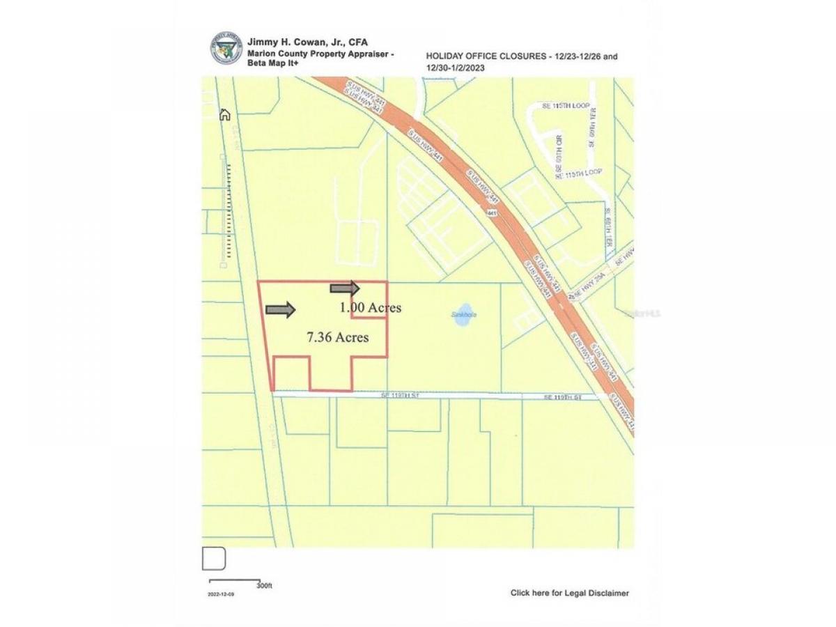 Great Location, High visibility. This land is two properties being sold as one- PARCEL# 38515-000-00 address 6601 SE 119th St. Belleview, FL 34420 (7.36 acres) and PARCEL# 38615-000-00 address 11600 S. US Hwy 441 Belleview, FL 34420 (1.00 acres). TOTAL LAND SIZE is 8.36 acres. This land is B5 Zoning.