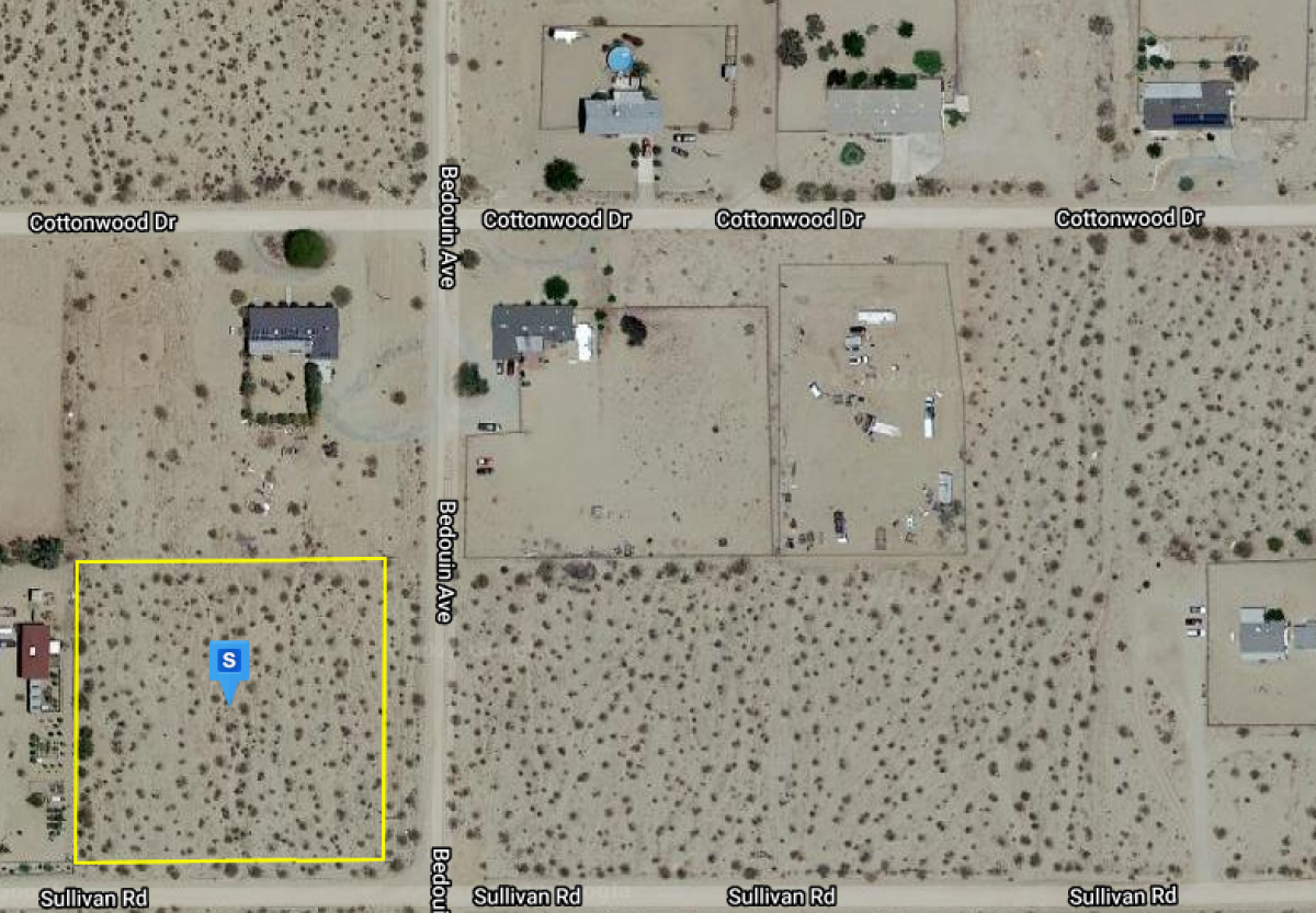 Property Description Located along the western edge of San Bernardino County, California. This property is about a half-mile off of 29 Palms Hwy using sand/gravel Old Dale Road that appears to be maintained, compacted, and smooth enough to traverse in any vehicle. The property is tucked into a neighborhood of 2-acre plots that feel well kept and welcoming. A great vacation, a relaxing getaway, nice homes, no sign of desolation. Utilities are promising and there are power lines on the property and a water hydrant across the street from the Southeast corner. This is a great place to call home, with a neighborhood that felt safe, this spot is promising. Dont miss the chance to own this property! Stake your claim now! DONT LET THIS OPPORTUNITY GO AWAY! ONLY 1 PROPERTY AVAILABLE! Distance to Nearby Cities and Attractions: Yucca Valley, CA - 27 min (21.6 miles) Desert Hot Springs, CA - 52 min (41.4 miles) Indio, CA - 1 hr 15 min (67.9 miles) Coachella, CA - 1 hr 20 min (73.5 miles) Palm Desert, CA - 1 hr 14 min (63.2 miles) Cathedral City, CA - 1 hr 7 min (55.9 miles) Rancho Mirage, CA - 1 hr 12 min (60.2 miles) Palm Springs, CA - 1 hr (47.9 miles) Joshua Tree National Park - 9 min (5.7 miles) Los Angeles, CA - 2 hr 16 min (142 miles) Las Vegas, NV - 3 hr (186 miles) Barker Dam Nature Trail - 34 min (19.4 miles) March Madness Sale!! $17,995 Only, No Doc Fee, No Extra Charges $2,000 Down Payment To Reserve GET STARTED NOW!! Property Details: Property Type: Vacant Land Financial Information: Cash State: California County: San Bernardino County Property Location: Twentynine Palms City, CA 92277 Property Street: Sulivan Rd. Lot Size: 1.99 Acres APN: 0624-153-05-0000 Legal Description: TRACT NO 3427 LOT 27 Electricity: Yes Power Lines are there Primary Road: Dirt Road Access Water: Would be by Alternative Sources Zoning: SFR 4 du/ac Annual Taxes: $302.03