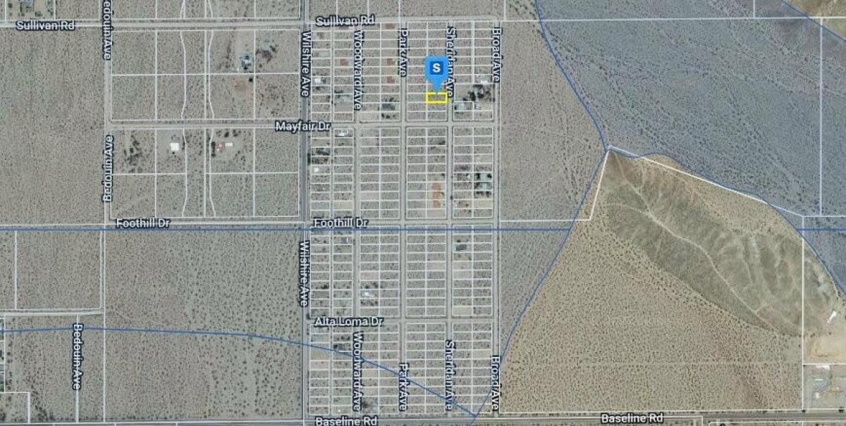 Property Description: This 0.17 Acres lot will be a perfect spot for you to invest, build or establish your own personal space for the weekend. You know you always have a place to ease up on or call home anytime you want to escape the crowded city while investing in the only asset that does not depreciate LAND! So, what are you waiting for? Make this property yours and uncover all the possibilities that it entails. Stake your claim NOW! DONT LET THIS OPPORTUNITY GO AWAY! ONLY 1 PROPERTY AVAILABLE! Distance to Nearby Cities and Attractions: Yucca Valley, CA - 27 min (21.6 miles) Desert Hot Springs, CA - 52 min (41.4 miles) Indio, CA - 1 hr 15 min (67.9 miles) Coachella, CA - 1 hr 20 min (73.5 miles) Palm Desert, CA - 1 hr 14 min (63.2 miles) Cathedral City, CA - 1 hr 7 min (55.9 miles) Rancho Mirage, CA - 1 hr 12 min (60.2 miles) Palm Springs, CA - 1 hr (47.9 miles) Joshua Tree National Park - 9 min (5.7 miles) Los Angeles, CA - 2 hr 16 min (142 miles) Las Vegas, NV - 3 hr (186 miles) Barker Dam Nature Trail - 34 min (19.4 miles) SPECIAL CASH PRICE! $11,995 Only, No Doc Fee, No Extra Charges $1,000 Down Payment To Reserve GET STARTED NOW!! Property Details: Property Type: Vacant Land Financial Information: Cash Only State: California County: San Bernardino, CA Property Location: Twentynine Palms City, 92277 Property Street: Sheridan Ave Land Area: 0.17 Acres APN: 0624-183-09-0000 Legal Description: TRACT NO 2506 LOT 214 Power: Yes Power Lines are there Road Condition: Dirt Road Access Water: Would be by Well or Alternative Zoning: SFR 4 du/ac Annual Taxes: $211.02