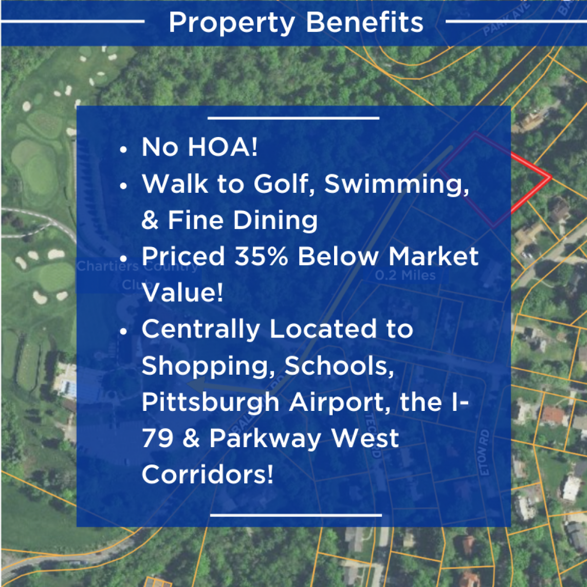 .94 Acres in Pittsburgh, No HOA, Great views, Assessed at 45K, Walk to Golf, Swimming, Fine Dining! Looking to build? Love the game of golf? Swim? Fine Dining? Enjoy the Country Club Vibe? Check out this beautiful lot in this upscale, family-friendly neighborhood surrounding the rolling, manicured greens of the Chartiers Country Club! Close to shopping, schools, Pittsburgh Airport, and the I-79 and Parkway West corridors! Chartiers Country Club provides a welcoming, family-friendly retreat from the stresses of daily life. Members enjoy creative cuisine from one of the area's most acclaimed chefs, recreational activities for all ages including an Olympic Swimming Pool, and stunning sunsets from the legendary veranda overlooking our meticulously maintained, championship, and historic golf course. Whether or not you're a golfer there's something for everyone to enjoy and you can literally walk to the Country Club!! Seller Financing Available. APN: 0106-L-00204-0000-00 Address: Baldwin Road, Pittsburgh, PA 15205 County: Allegheny, PA GPS Coordinates: 40.436001, -80.089534 (If facing property, the lot is located to the right of 700 BALDWIN RD, PITTSBURGH, PA, 15205) DISCLAIMER: Buyer must verify work with County to know what can can't be done with the land, obtain proper permits if needed confirm the availability of any utilities needed/serviced on the lots. The seller makes no warranties or representations about the land, its condition, or what can be built on the parcel.