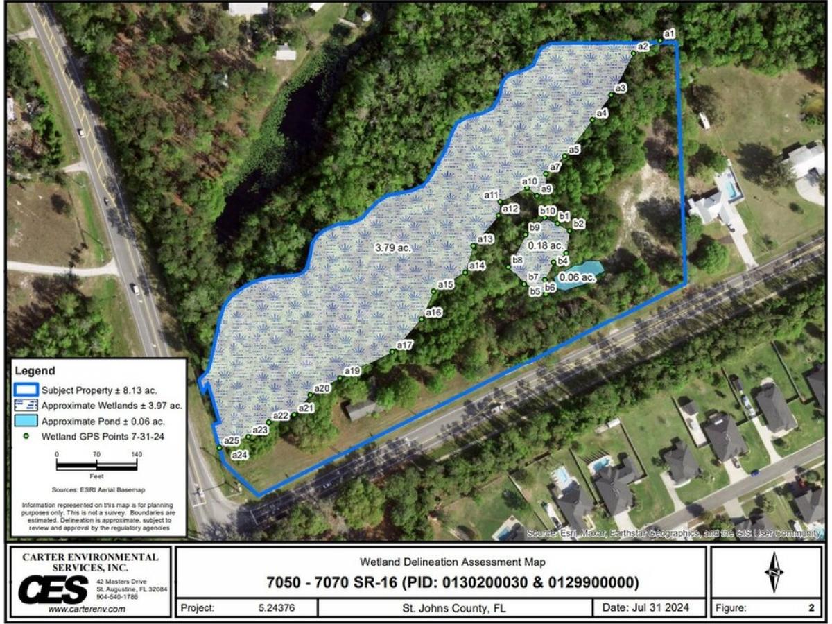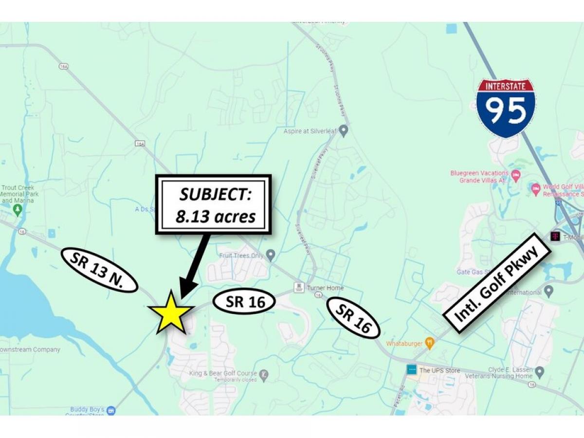 Great Opportunity To Own A Prime Piece Of Real Estate At The Crossroads Of Progress In Saint Augustine,Fl. Presenting 8.13 Acres Of Vacant Land Located At The Intersection Of State Road 16 And State Road 13 N,This Parcel Offers A Strategic Corner Location Primed For Development. Located In One Of The Region#039;s High-growth Landscapes,This Open Rural-zoned Offering Stands As A Testament To Endless Possibilities. Boasting Proximity To Major Thoroughfares Frequented By Motorists Bound For Green Cove Springs,Florida,And The Burgeoning Residential Enclave Of Silverleaf,This Locale Offers Growth Potential. Whether You#039;re A Savvy Investor Or An Entrepreneur With A Grand Vision,This Property Is A Blank Canvas. Imagine Designing Your Dream Project Amidst The Backdrop Of Saint Augustine#039;s Dynamic Growth.,The Subject Property Consists Of Two St. Johns County Parcel Ids: 0130200030 amp; 0129900000 Which Is Located At 7050-7070 Sr-16 And Totals Approximately plusmn; 8.13 Acres In Size. The Site Reconnaissance Occurred On July 31,2024 And Revealed That The Subject Site Contained Forested Wetlands,Forested/Grassed Uplands,And A Pond. The Wetland Within The Northern Portion Of The Property (plusmn; 3.79 Acres) Consists Of Wades Creek And Its Associated Floodplain. Additionally,A Wetland (plusmn; 0.18 Acres) And A Pond (plusmn; 0.06 Acres) Are Located In The Central Portion Of The Property.
