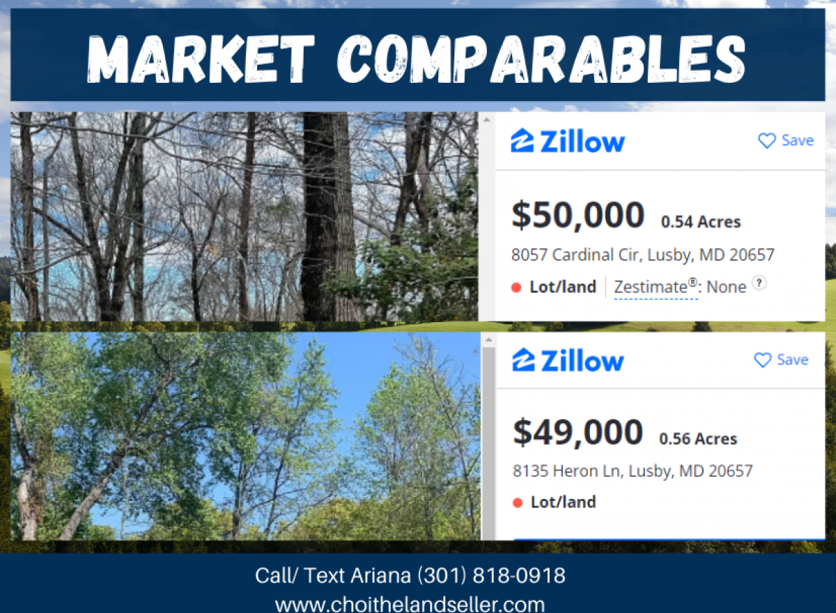 0.73 Acres in Lusby, MD- Assessed at $56k – Nearby Comps are Similar – BUY FOR $24k Are you tired of looking for the perfect lot to build a small house? THIS IS THE LOT FOR YOU! DON’T LOOK FURTHER. This 0.73-acre lot is located in the White Sands community in Lusby, MD. This is a Large, wooded lot that needs to be cleared. No engineering has been completed at this time. The lot has been assessed for $56,000. BUY TODAY well below the assessed value. It is yours for $24,000!!! Lusby is a community known for its quaint charm, local seafood, and breathtaking beaches along the iconic Chesapeake Bay. Conveniently located for those employed in Washington DC, Andrews AFB, PAX River Naval Air Station, and Annapolis. Finance Option $5,800 Down! Monthly payments of $384.50 for 72 months*! Length of terms may be adjusted to suit the buyer's monthly budget. Parcel Size 0.73 State Maryland County Calvert Parcel #01-184067 Address 8125 HERON LN, LUSBY, MD, 20657 Legal Description LT 13 BLK 23 PLAT 11 WHITE SANDS HOA $190 yearly. White Sands Civic Association Taxes $592.66 ACCESS Paved Public Road POWER Nearby WATER Well needed SEPTIC Needed COORDINATES 38.4283, -76.4688 ZONING Residential For more info please contact Ariana at 3 0 1 8 1 8 0 9 1 8 or email me at ariana @ triple win solutions dot com or check out our site choithelandseller dot com