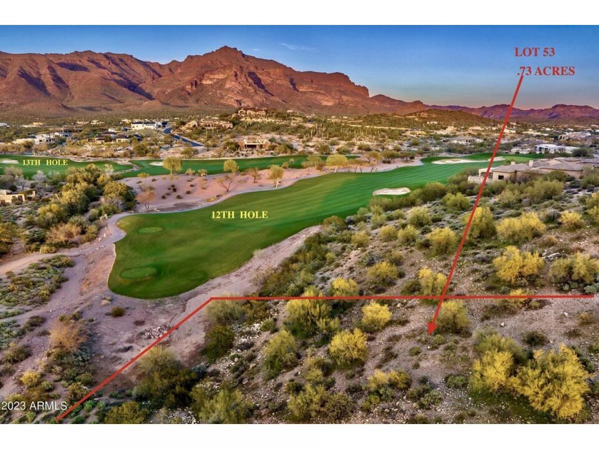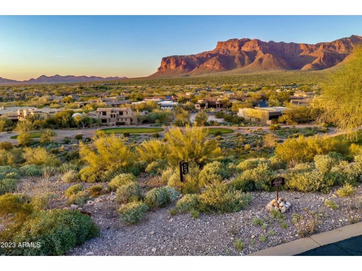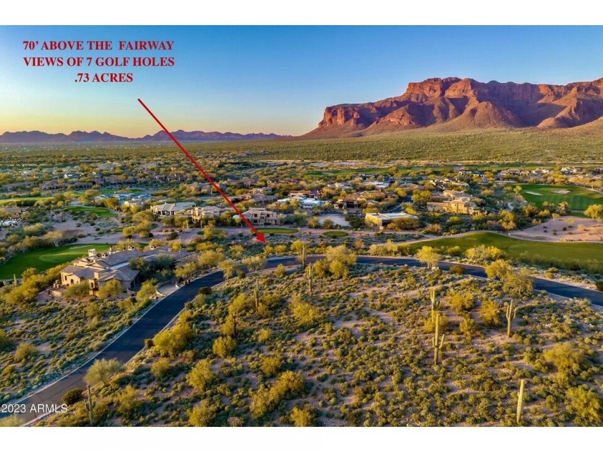 Incredible one-a-kind hilltop lot with commanding view over 50 feet above the fairway. Unmatched mountain vistas for central Arizona. Full unobstructed views of the Superstition and Usery Mountain ranges, portions of 6 fairways of two golf courses, wonderful city lights and glorious sunsets. This lot once sold for $1M. The hillside setting provides a great opportunity for creativity and uniqueness. Exacting community design standards and strict CCR#039;s provide an atmosphere for lasting value propositions. Gated luxury community of Superstition Mountain Golf amp; Country Club. Membership to the golf club and amenities by separate agreement. Private streets. Pinal County is 76%+ open space--quiet and serene. 33 miles from the front gate to Sky Harbor Terminal 4. HOA Addendum under document tab.