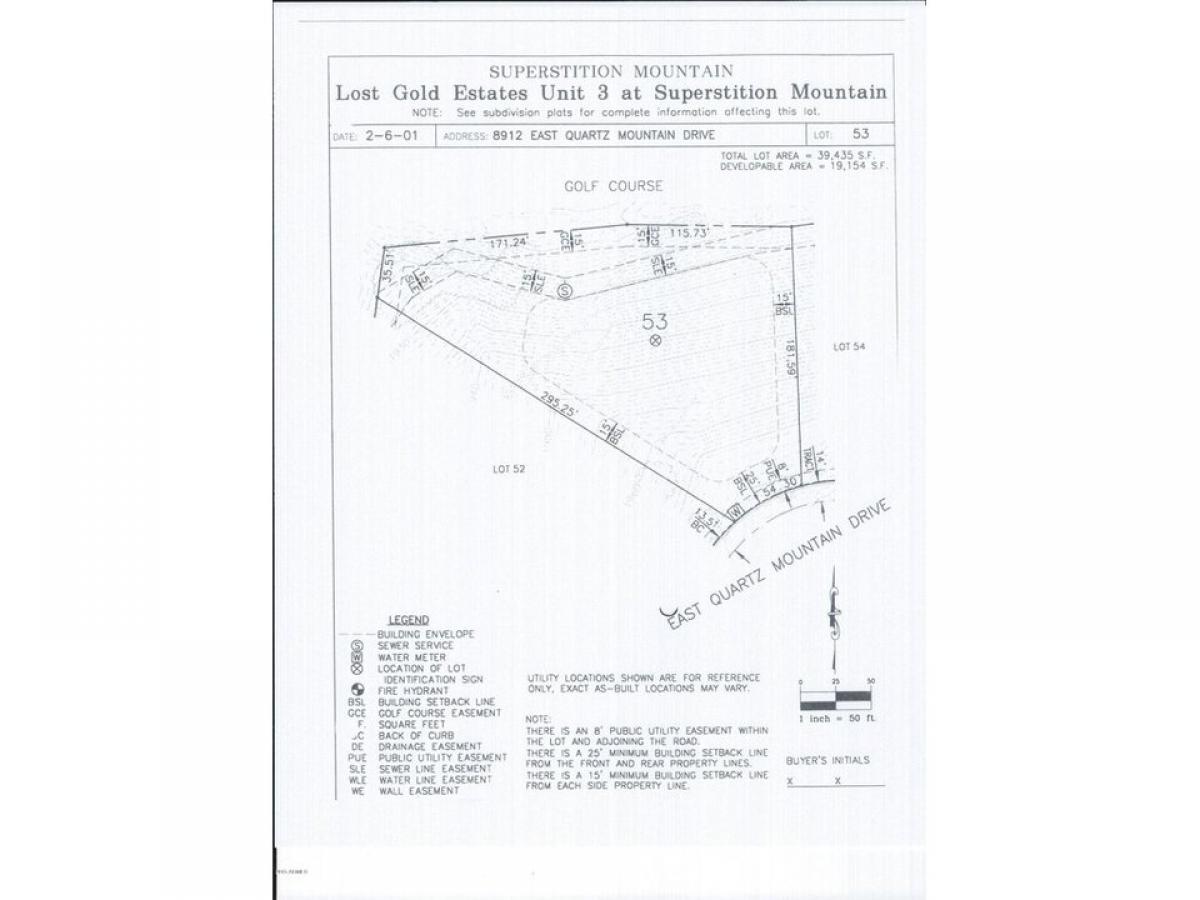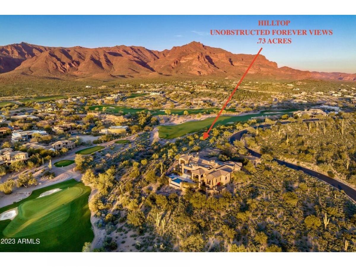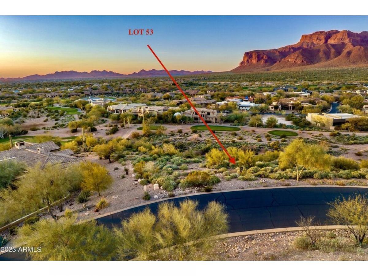 Incredible one-a-kind hilltop lot with commanding view over 50 feet above the fairway. Unmatched mountain vistas for central Arizona. Full unobstructed views of the Superstition and Usery Mountain ranges, portions of 6 fairways of two golf courses, wonderful city lights and glorious sunsets. This lot once sold for $1M. The hillside setting provides a great opportunity for creativity and uniqueness. Exacting community design standards and strict CCR#039;s provide an atmosphere for lasting value propositions. Gated luxury community of Superstition Mountain Golf amp; Country Club. Membership to the golf club and amenities by separate agreement. Private streets. Pinal County is 76%+ open space--quiet and serene. 33 miles from the front gate to Sky Harbor Terminal 4. HOA Addendum under document tab.