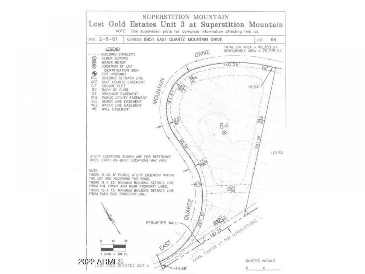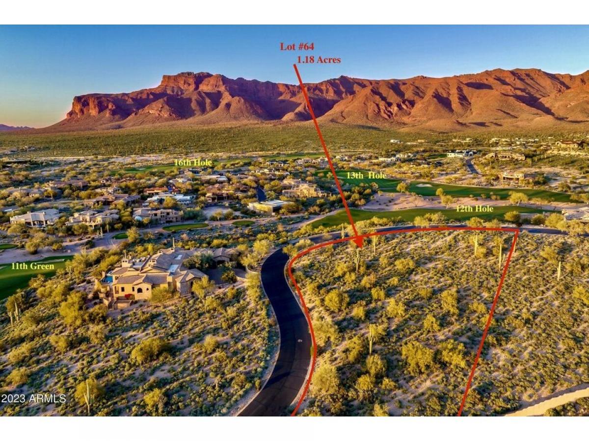 Spectacular elevated hillside Sonoran Desert home site. City lights, Superstition amp; Dinosaur Mountain vistas. Views North, South, East amp; West. Premier gated community w/2 Nicklaus-designed championship courses. 50,000sf club house. A 2 lot package possibility w/lot #63 next door, available for $175,000, --same seller. Renderings shown herein had past preliminary approval. Using both lots, when built, can feature 360 degree views. Check photo tab for site plan, elevations, floor plans. Golf Club membership under separate agreement. Exact design standards amp; strict CCR#039;s provide the opportunity of lasting value. Million dollar+ homes are commonplace in this community, Arizona#039;s best kept secret, only 34 freeway miles to Sky Harbor Airport.