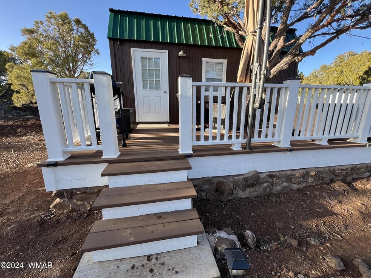 Wow! This property offers the perfect getaway to the cool White Mountains. The property itself is only 15 minutes from shopping and the amenities of Show Low, yet offers seclusion and mountain views. The property will include two separate parcels for addition space. The fun part is the adorable tiny home included with the property. As you will see this little home has been built with possibilities to enjoy as a luxurious full time home, a weekend getaway, or a turnkey vacation rental. The home is newly built and comes fully furnished. No electric bills here with 3,000KW solar and battery set up. This place is a must see for the price and is ready to go...call and schedule a viewing today! Additional parcel number 106-27-289 is included.