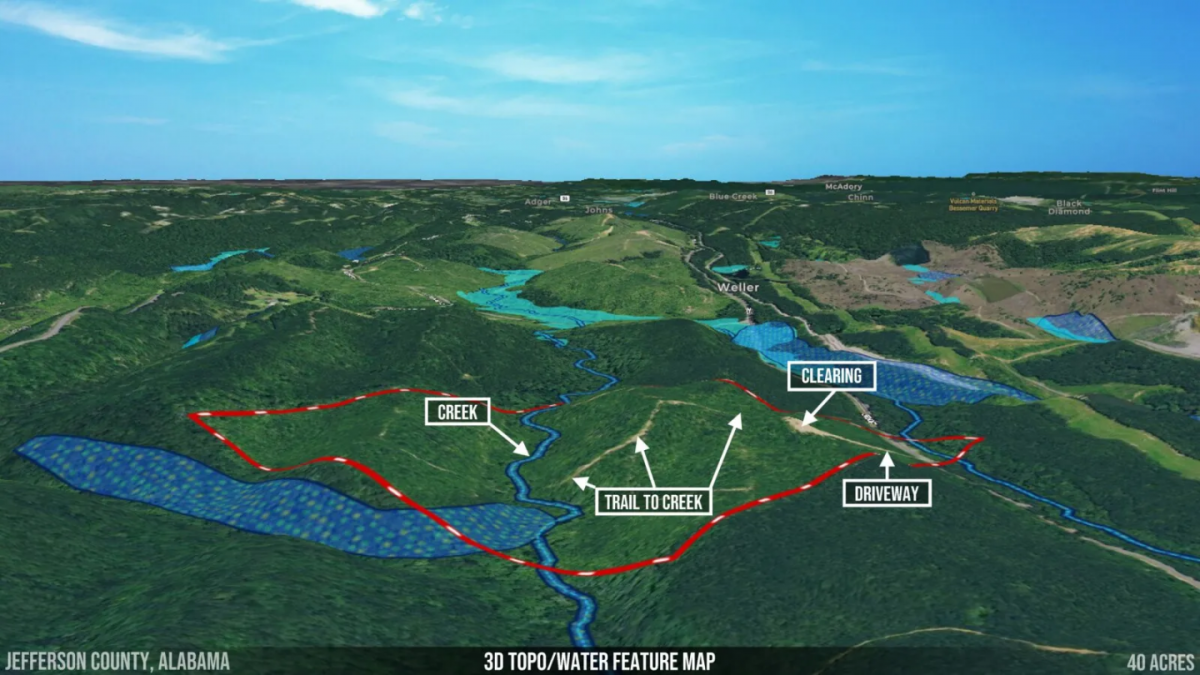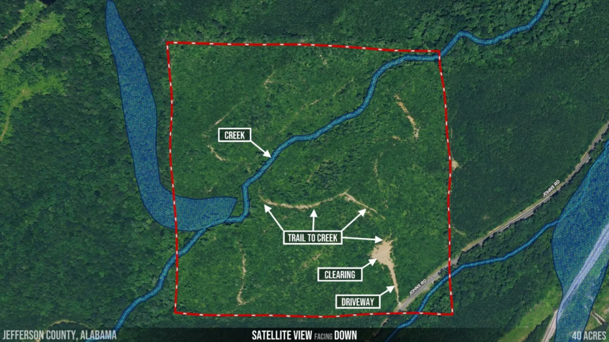Cheap Land in Alabama near Birmingham You won’t find a better combination of location, accessibility, terrain, and value than this quarter-quarter section of prime hunting and recreation land almost equidistant between Birmingham and Tuscaloosa. Creek thru Middle of PropertyGated Driveway on Paved Public RoadClearing w/Trail to CreekPriced Well Below MarketPerfect Hunting Rec TractGreat Location b/n Birmingham Tuscaloosa PROPERTY: Escape to the peaceful serenity of 40 acres of prime hunting and recreational land! The terrain is mostly wooded but the property’s gate on Johns Road, a paved public road, guards a driveway, which leads to a clearing at the top of a ridge, so accessibility is excellent. From the clearing, walk down a trail to the creek that runs through the middle of the property, providing an ideal habitat for deer and other wildlife. Johns Road cuts through the SE corner of the property, producing 380 feet of road frontage on both sides. The A-1 Agricultural zoning is very flexible and does allow for mobile homes, should you decide to build a cabin here for seasonal or even permanent living at some point. Being roughly equidistant from Birmingham and Tuscaloosa makes this an ideal retreat for those living in either area. Don’t miss out on this incredible opportunity at an unbeatable Acretown price – grab it now! The best and most updated source of information on this property will always be at https://www.acretown.com/jeffersonal Call or text Scott directly at 314.639.9777 or email info@acretown.com if you have any questions or would like to make an offer. We’ve posted a lot of info below – including critical instructions for visiting the property – so please keep reading! Best Deal in the Market – Check Zillow or Realtor and You’ll Agree! After opening this map, you may see even more information about the area by clicking on Map Legend, then Overlays. ADDRESS (use GPS coordinates for navigation): 9289 Johns Road, Brookwood AL 35444SIZE: 40 acresGPS COORDINATES: 33.328194, -87.158528APN: 44-00-03-0-000-003.000ABRIDGED LEGAL DESCRIPTION: SW 1/4 OF NW 1/4 LESS R/W OF CO RD #36 SEC 3 TP 20 R 5 WFULL LEGAL DESCRIPTION: download herePLAT MAP/SURVEY: none (get boundary/KML file here – opens in Google Earth)TITLE: General Warranty deed (clean – no back taxes, no liens)MINERAL RIGHTS: any mineral rights we own will convey to buyer (we have no knowledge of severance of mineral rights by a previous owner)DIMENSIONS (approximate): 1320′ x 1320′FLOODPLAIN: noneELEVATION: 529 feetTERRAIN: hillyCONDITION: undeveloped, woodedACCESS: 380 feet of direct frontage on Johns Road, a paved public roadPOWER: exists at Weller Johns Road intersection (about half-mile from property line)WATER: would need to install a wellWASTEWATER: none (septic system would need to be installed)The built-in savings you receive on all Acretown properties frees up extra money to install a variety of conventional and more modern, non-conventional septic systems, like mound systems, pressurized dosing, plastic chamber leach fields, aerobic treatment, etc. (which have become popular solutions to non-satisfactory perc tests).TAXES: $773.54 in 2021HOA: noneRESTRICTIONS/ZONING: A-1 Agricultural (summarized below, see full document here, starting at page 40)mobile homes OKfarming and livestock OKseveral commercial uses OKhunting OKSCHOOL DISTRICTS: McAdory (Elementary) – McAdory (Middle School) – McAdory (High School)NEAREST CITIES: Lake View Birmingham TuscaloosaNEAREST AIRPORTS: Birmingham-Shuttlesworth International (38 mins)COUNTY GOVERNMENT:Assessor (205) 325-5505Treasurer (205) 325-5373Clerk/Recorder (205) 325-5491Planning Zoning (205) 325-5321 You can go view the property at your convenience – owner does not need to accompany. Please call/text us to let us know you’re heading out, so we can (1) confirm its availability (our land does sell fast), and (2) ensure we have our phone on us in case you need help or have any questions. We’d appreciate a couple hours notice if possible. In case you lose cell phone service, it may be helpful to print off as many helpful documents as you can before you head out there. DRIVING DIRECTIONS: Click HERE to open the destination in Google Maps, and simply enter your starting point to get step-by-step directions. From this link, you can press Directions (on the left), enter your starting point, and Google Maps will provide you with step-by-step directions.You can also click Send to Phone if you’re viewing this on your computerAnd Save to download the directions so they’ll still work if you lose cell service. If for some reason you’re having trouble with that link, you can navigate to GPS Coordinates 33.328194, -87.158528. WALKING THE PROPERTY LINES w/YOUR PHONE: We highly recommend downloading Google Earth to your phone if you don’t already have it. Then . . . Download the property boundary file (called a KML or KMZ file) here. You may be prompted to click download one more time, so do that . . . OR you may be prompted to immediately open the file with Google Earth and, in that case, do that and ignore the remaining steps. Otherwise . . .Open Google EarthGo to the main menu (the three horizontal lines at the top left of the screen), then Projects Open Import KML file select the KML file you just downloaded (it should show up on that screen). Now you should be able to see the property lines on the map, and the green dot represents where you’re currently standing. This is a very important tool to learn BEFORE you head out there. Please call us if you have any questions about it. When the outdoors call you, 12 minutes to the south lies Ski Lake, a tranquil reservoir ideal for fishing, water sports and serene views, and 10 minutes ahead to the southeast is Tannehill Ironworks Historical State Park, featuring a miniature railroad chugging through the pines and offering hiking, camping, and outdoor recreational opportunities on over 1,500 acres st
