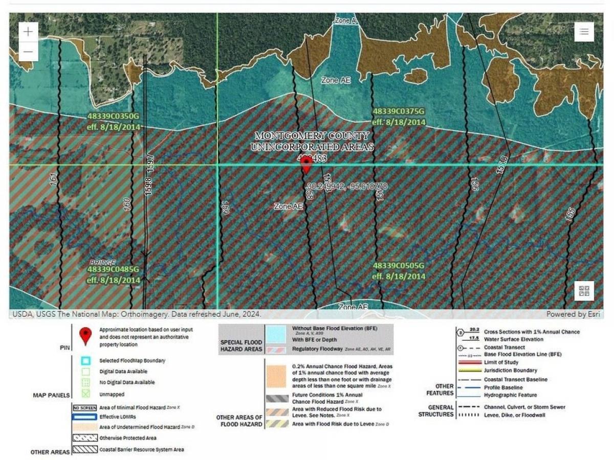 Unrestricted 5 Acre lot nestled within proximity to The Woodlands, Magnolia, and Montgomery. Property is located in a flood plain.
