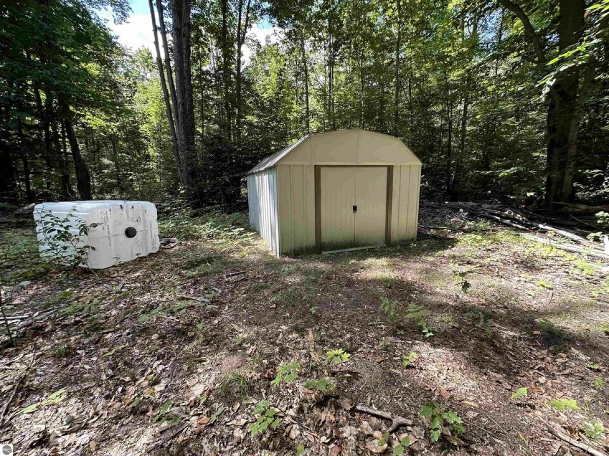 OFF GRID LIVING - a hunters dream - This 10 acre square parcel is perfect for hunters and outdoor enthusiasts alike! Located a 1/2 mile down a seasonal trail, this property comes with 2, driveway access points with a partially cleared area at the top of the hill for a future home build. It comes with a 12' x 32' Keystone Montana camper with supplied power from a 10,000 watt Firman generator, 5,000 Bluetti 5,000 inverter with a 3,000 watt battery and 2,000 watts of solar power provided by the 10 solar panels installed on the property. There are 3, 275 gallon water containers to provide months worth of water and a 4, 50 gallon barrel leach field installed. The property also holds 2, new 10' x 12' metal storage units, and a 10' x 20' canopy carport for storing vehicles, tractors or toys. This property will not qualify for conventional or any other type of special financing and Sellers will entertain a land contract. Property is being sold "AS IS"! Camper is negotiable with purchase of property *Camper title to transfer at closing *Riverside Energy owns the mineral rights