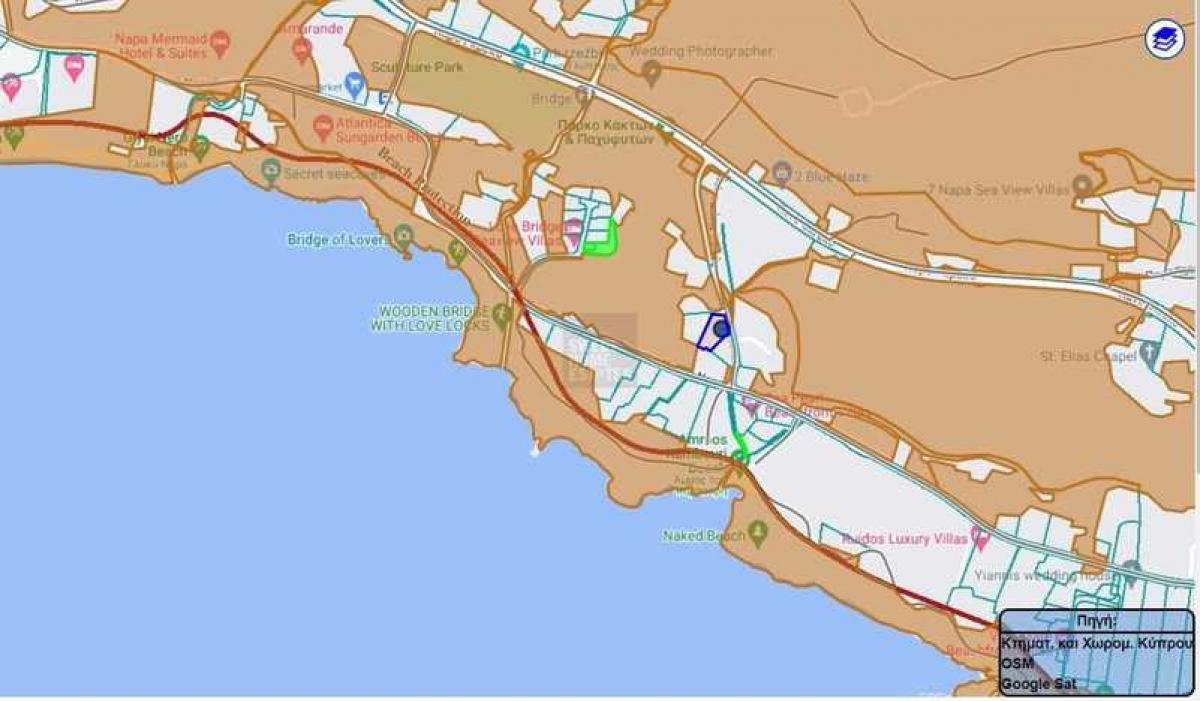 This is an exceptionally rare find, as only a handful of plots remain in this sought-after locale. Just a leisurely stroll from the iconic Love Bridge 300m, as well as two of the area's most famous beaches, Kambouri 200m and the Grecian Bay 600m, this land enjoys an enviable position. Surrounded by only a select few opulent residences, it offers privacy and prestige in abundance.