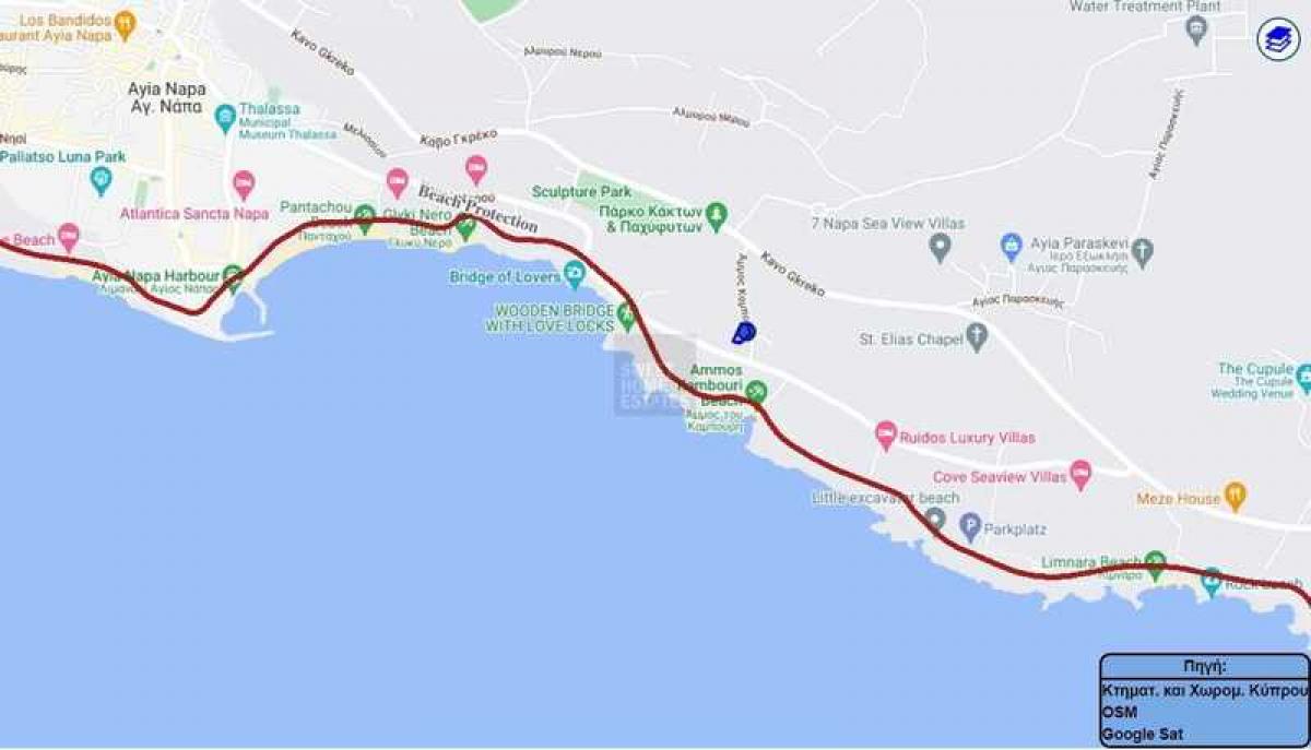Public road frontage of 60m, attached to government protected land area and Zoned for T5(E3) construction, boasting a 20% density, this is a canvas for your architectural dreams to come to life. Seize this exclusive opportunity to create your vision of luxury living in Ayia Napa's most prime address.