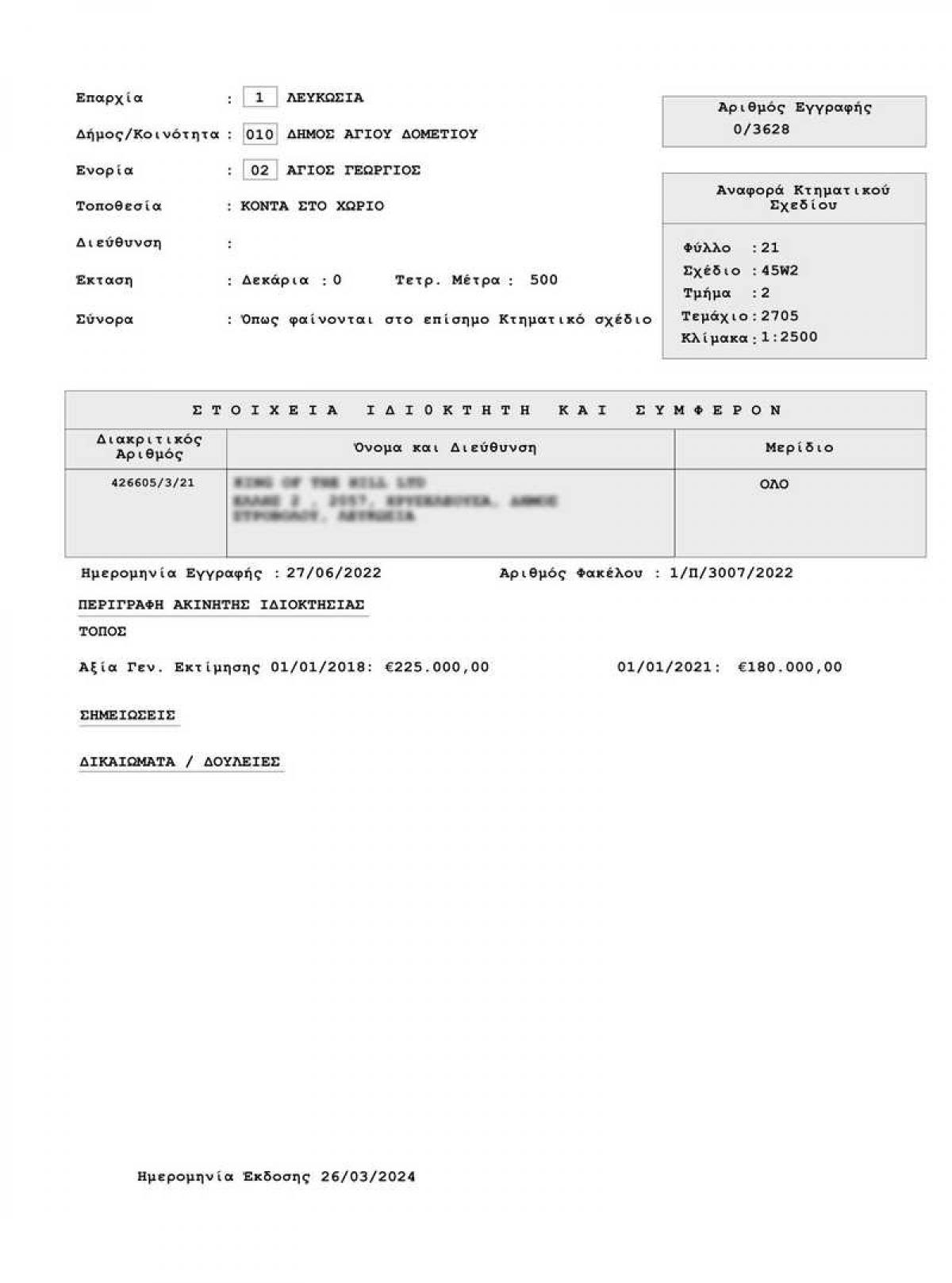 Land survey has been completed and approved by the Department of Lands and Surveys. Topographic plans are available. Title deed is ready.