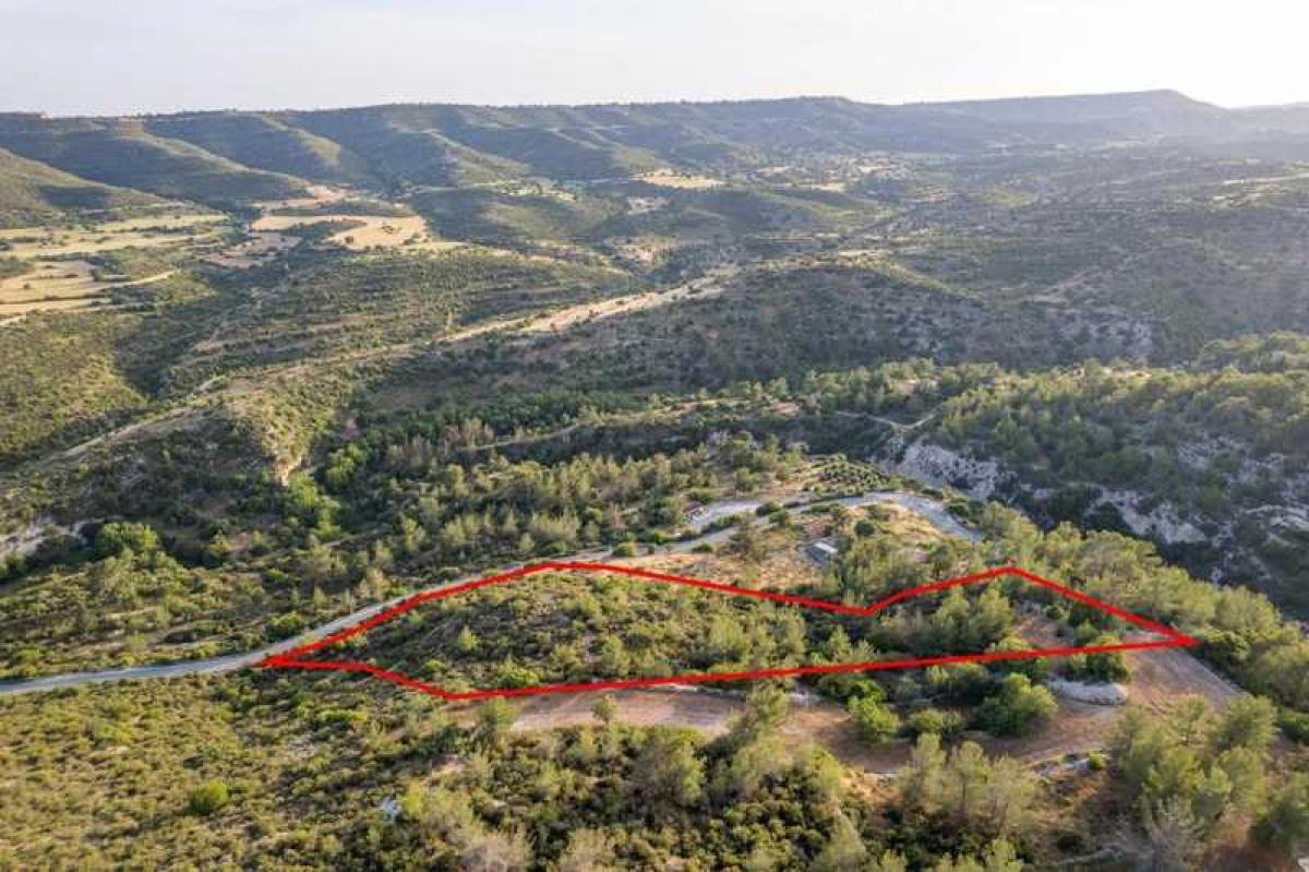 The property is a field in Agios Therapon. It is located 4,6km from the center of the village and 2.8km from Kouris Dam.The field has a land area of 10,703sqm and abuts a registered road with a total frontage of 35m.