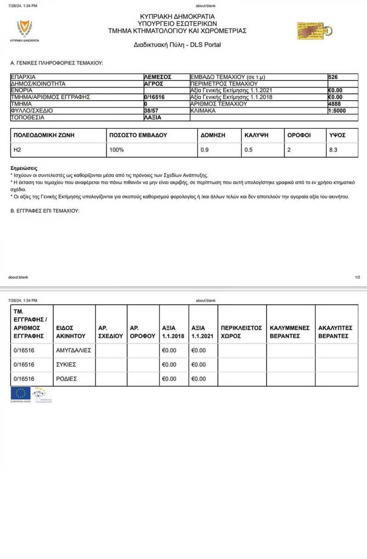 Residential plot for sale in Agros, within the village, price negotiableShare: No