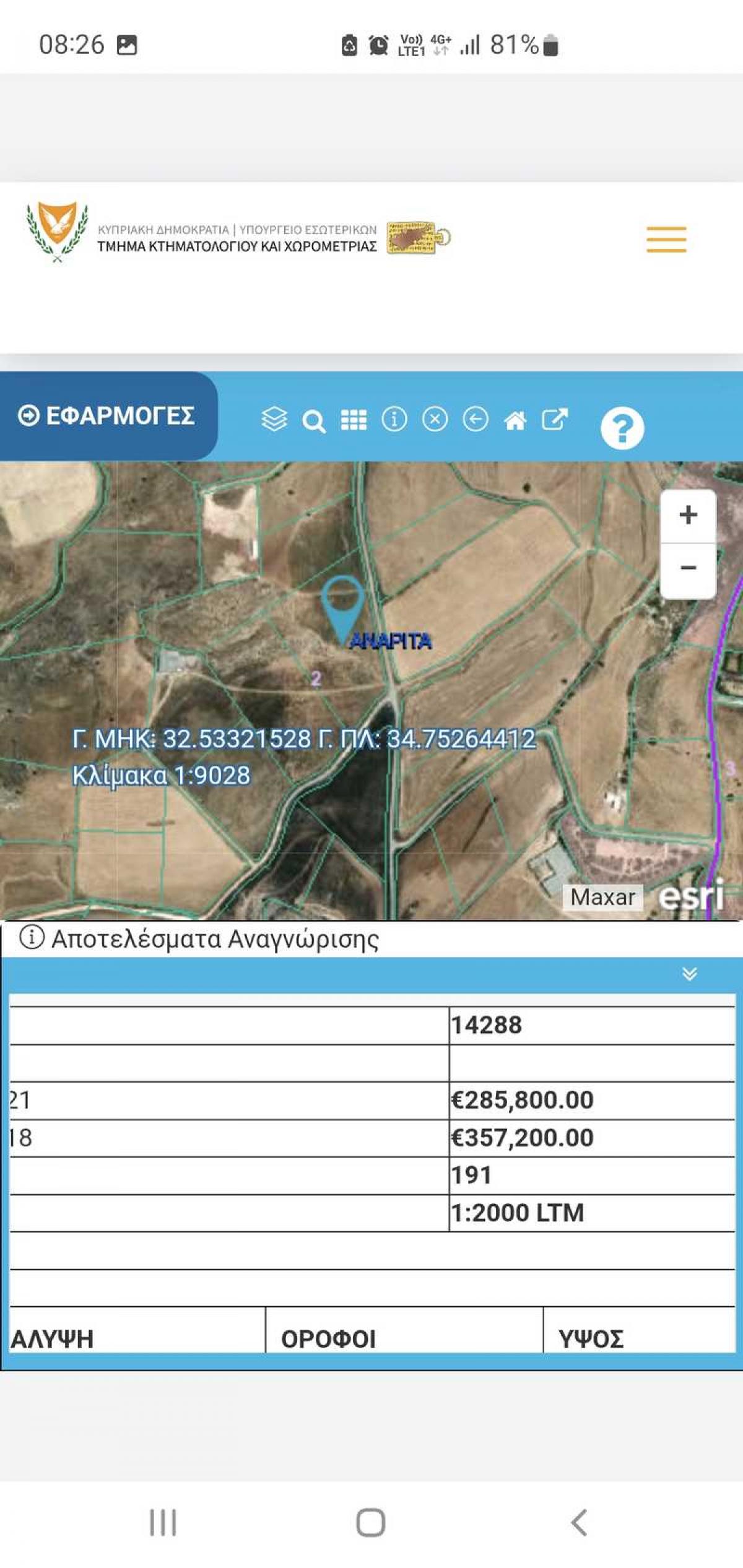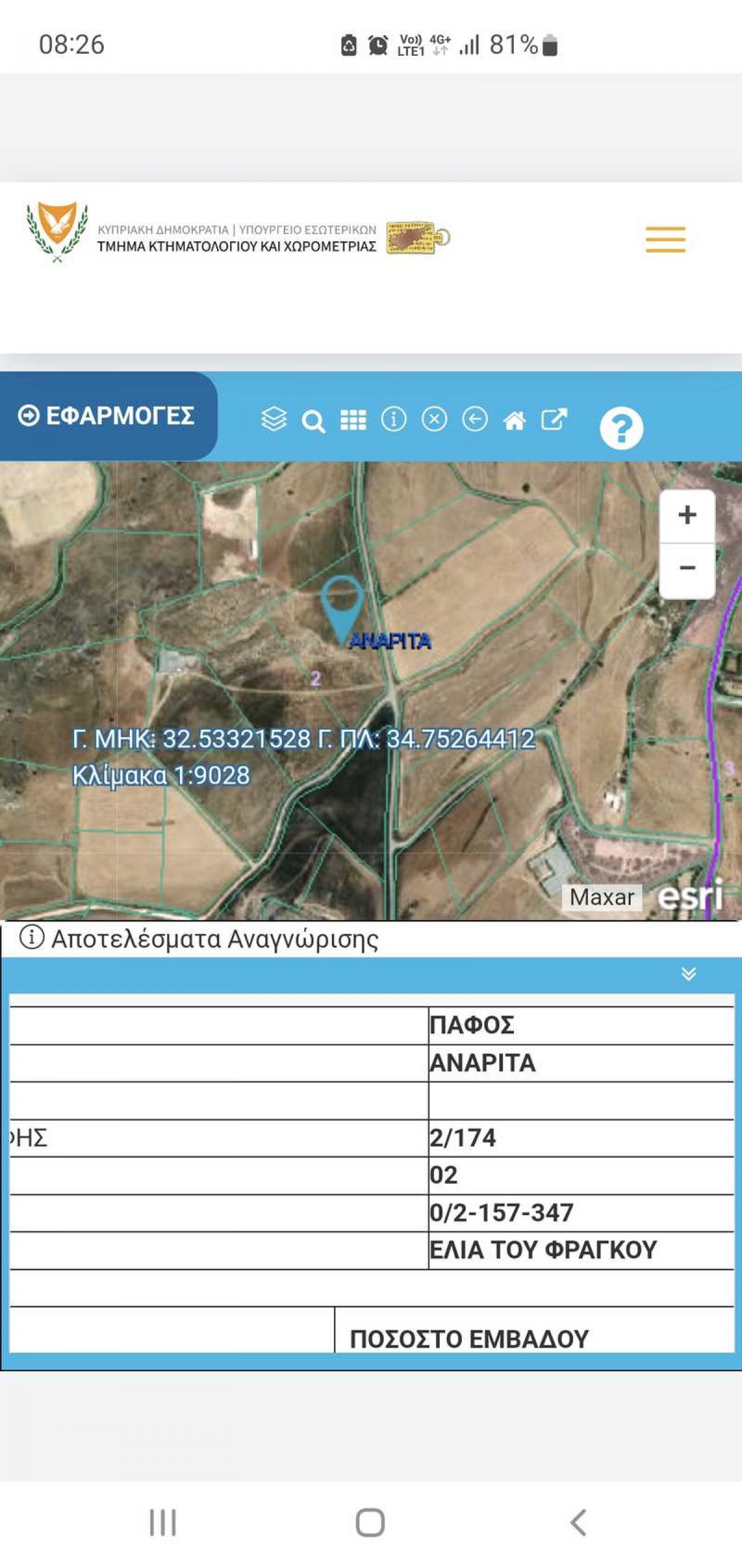 ΙNVEST IN LAND FOR SALE OR RENT IN ANARITA PAPHOS 14.287 s.q.(10.5 DONUMS) WITH ROAD