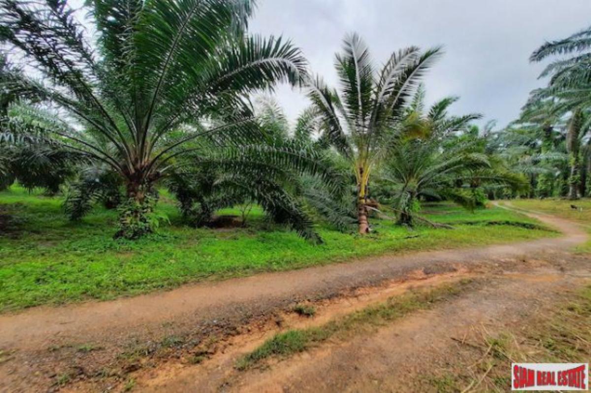 This is a very large land plot for sale at 111-2-97 Rai large, it is 178,788 sqm meters. The land is located next the the main road with the length along the road at 116 meters.The land has three generations of 6, 10, 20 year old palm plantation and the harvest is 30 tons per round. There is a dirt track on the land. Behind the land is a low mountain and small lake. Village water and electricity is ready to set up.