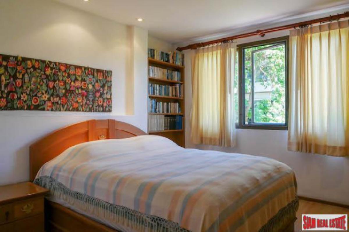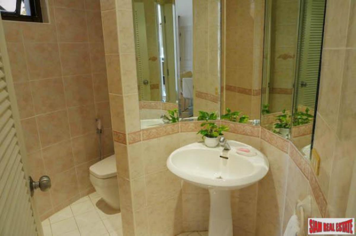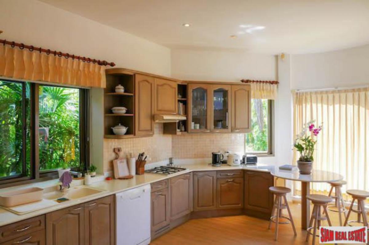 The nicely designed kitchen comes with a big refrigerator, freezer, microwave, gas stove top and dishwasher. This room also has lots of wood cabinets and counter space. There is a maid's quarters for a live-in maid, laundry room and a Thai kitchen at the back of the living area. Mature gardens with a sprinkler system surrounds the home. It is a manageable size and well maintained.