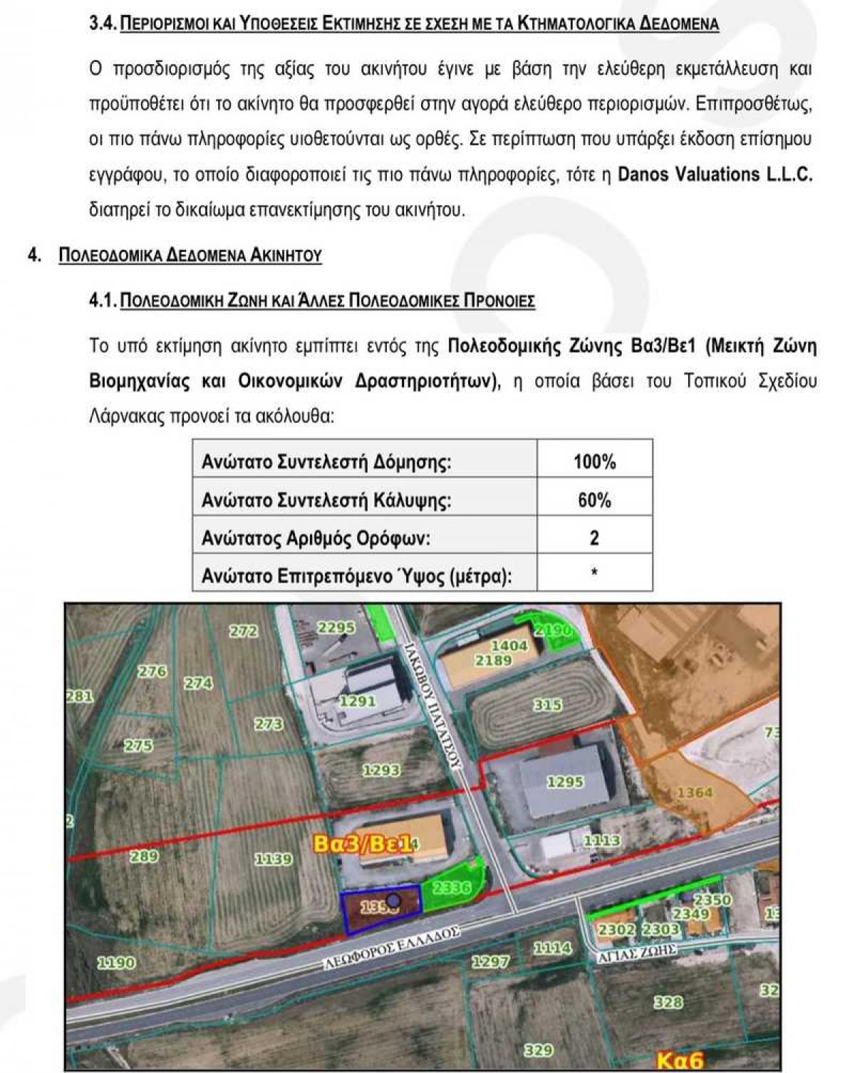 Οι πιο πάνω πληροφορίες υιοθετούνται ως ορθές. Σε περίπτωση που υπάρξει έκδοση επίσημου εγγράφου, το οποίο διαφοροποιεί τις πιο πάνω πληροφορίες, τότε η Danos Valuations L.L.C. διατηρεί το δικαίωμα επανεκτίμησης του ακινήτου.