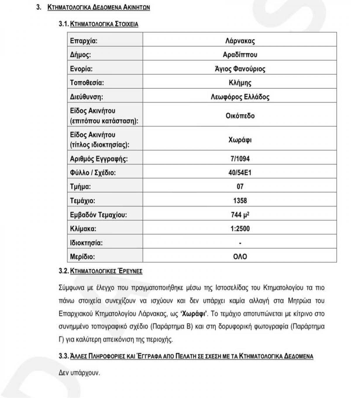 5.4. ΠΕΡΙΓΡΑΦΗ ΤΟΠΟΘΕΣΙΑΣ ΚΑΙ ΑΚΙΝΗΤΟΥ 5.4.1. ΠΕΡΙΓΡΑΦΗΤΟΠΟΘΕΣΙΑΣΤο υπό εκτίμηση ακίνητο βρίσκεται στην τοποθεσία 'Κλήμης', εντός των Δημοτικών ορίων του Δήμου Αραδίππου, της Επαρχίας Λάρνακας.