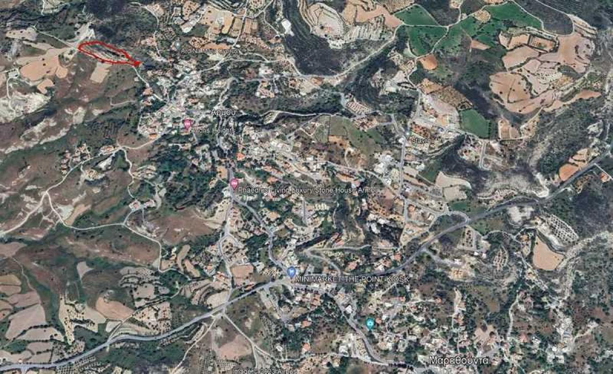 The asset is a residential field in Armou community, Pafos district. It is located approx. 2km northeast from Konia community, approx. 2km southeast from Mesa Chorio community and approx. 3km north from Pafos - Limassol highway.- It has regular shape, even surface and it abuts a registered road on its northern boarder.The surrounding area is primarily residential with mostly houses. The plot is offering a panoramic view.