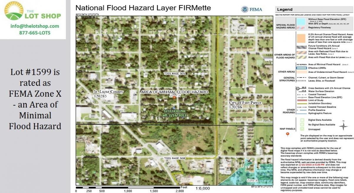 Lot # 1599 This 62.6' x 135' .19-acre, 8,276.4 sq ft. corner lot in Fort Pierce is rated as FEMA Zone X – an Area of Minimal Flood Hazard; and has access to all public utilities (see links to water and wastewater maps below) and is just a few blocks from NW Pioneer Park and the Boys and Girls Club of Saint Lucie County! This is a great opportunity for investors, there is no time limit to build, and taxes are under $200/yr. to carry! You’re welcome to look in person whenever you’d like. No appointment needed! This is by far the lowest priced lot in this area, smaller interior lots are priced from $25k-$35k; – take a look at these active neighborhood comps! You’ll love this location near plentiful area attractions, surrounded by the natural beauty of St. Lucie County! This parcel is located less than 6 miles from the beautiful beaches! There’s so much see and do in this area! Fort Pierce is currently one of the most affordable beach towns in the COUNTRY! Discover why so many people are choosing to call Fort Pierce their home! Fort Pierce has been the hub of St. Lucie County for more than 100 years and is one of the oldest communities on the East Coast of Florida! It still retains its period Spanish Architecture and charm. Downtown Fort Pierce was named one of the Most Idyllic and Historic Main Streets in America by USA Today in 2015. The historic waterfront area offers shopping, dining, fishing, entertainment, and community activities such as Farmers Market, Car Shows Bike Night, Friday Fest, Jazz Market. There is so much to see and do in Fort Pierce, it really has everything! Visit one of the numerous local breweries or waterfront restaurants after a day on the golf course or beach. Stroll Marina Square Park and take in the views! Take a river cruise, airboat tour, deep-sea fishing trip or sailing adventure with one of the local outfitters. Enjoy the beauty of Heathcote Botanical Garden. Check out the beach at Fort Pierce Inlet State Park where swimming and surfing are popular. If you need a break from the sun have a great dockside dinner, enjoy the local theater, or visit the manatees or National Navy SEAL Museum. Disclosure: Appraiser calculations provide for an approx. 62.6' x 135' .19-acre, 8,276.4 sq ft. corner lot. A legal survey would be needed to determine the actual area. Contact the County to check the current zoning information for the specific parcel that you are interested in, as there could be changes to the regulations and/or use permits. To develop your property, you will need to comply with other city codes, such as zoning overlays, sufficient parking, and green space, before requesting building permits. Please contact the City of Fort Pierce for questions on allowable use at 772-467-3000 at or e-mail planning_dl@cityoffortpierce.com. ALL prior year taxes cleared by SELLER Warranty Deed Provided at closing. https://fpua.com/water-service-area-map/ https://fpua.com/wastewater-service-area-map/ Fort Pierce Zoning Regulations Fort Pierce FEMA Map Fort Pierce Utilities Authority St. Lucie County Zoning Contact Info St. Lucie County Land Development Code Link This lot is zoned RS-4 RESIDENTIAL, SINGLE-FAMILY. TheLotShop.com helps you find Florida lots land fast. Search for land, find a lot you love and close the deal right on your mobile device! Select lots offer our no qualifying, guaranteed finance option to allow you to diversify your portfolio at wholesale prices! Search by Map, County, Features, Uses (Tiny Home, Manufactured Home, Waterfront, etc.) on our Advanced Search Page! Secure your FL land ownership dream today, buying property has never been this easy they aren't making more land!