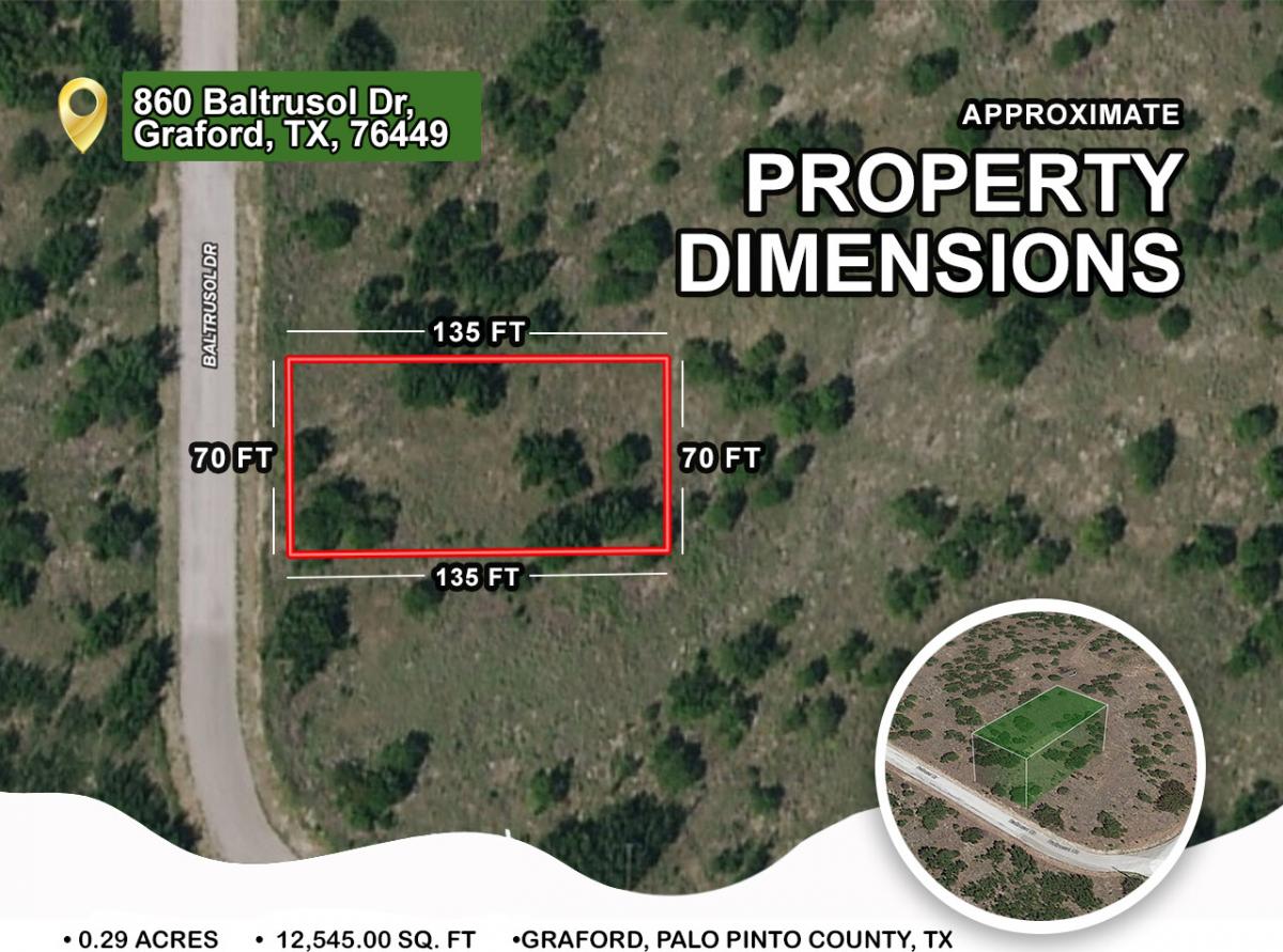 This 0.29 Acre Residential Lot for sale is close to the highly sought-after Possum Kingdom Lake. Electricity and water infrastructure are available in the area, ensuring a hassle-free connection when you decide to build your dream retreat. With abundant acreage and potential, this property for sale provides a blank canvas for building your dream house. The property falls within the designated zoning district C1 – Single Family Residential, offering flexibility for various potential uses, such as building a private residence, vacation home, or a weekend getaway. You will enjoy easy access to water activities, fishing, boating, and hiking, making it a perfect spot for outdoor enthusiasts. Surrounded by the natural splendor of Graford and Possum Kingdom Lake, this vacant parcel offers panoramic views of the rolling hills, lush greenery, and serene landscapes. Breathe in the fresh air and immerse yourself in the tranquility of nature right at your doorstep. How long has it been since you’ve had a full day or weekend of nonstop fun activities at the lake? Grab your family, fishing pole, and swimsuit, and head for the clear blue water and striking scenery at Possum Kingdom Lake. It offers fun both on water and land. On the water you can swim, boat, fish, and jet ski. On land, you can golf, camp, picnic, hike, bike, and study nature. If you're a music fan you can enjoy live outdoor music events and nightlife activities in the community. Enjoy the best of both worlds in this peaceful area, while also having all essential amenities nearby. The community provides a range of shops, restaurants, RV Campgrounds, and services, ensuring all your needs are met within a short drive. Don’t miss out on this desirable location and the growing popularity of the warm southern hospitality at Possum Kingdom Lake. This is a sought-after destination for golfing and so much more. This is the beginning of an excellent investment opportunity at a cheap price, Take advantage of the burgeoning real estate below the market cheap land and capitalize on the future value appreciation of this well-located property. Contact us today at 562-308-8970 or visit our website to learn more information to secure this deal!