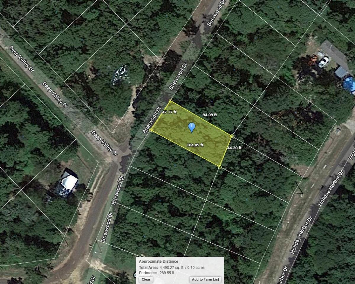 This 0.13 acre lot is located in Jefferson (Pine Harbor), Texas and the address is Brierwood Drive, Jefferson, TX 75657. Jefferson is located just over 160 miles East of Dallas, Texas and sits between two lakes, Lake O' the Pines and Caddo Lake. Caddo Lake is one of the best bass fishing lakes in Texas, known for being a shallow, cypress filled lake with emergent vegetation and swampy bayous. Located in the Piney woods of Texas, Jefferson is located in a beautiful portion of land littered with smaller creeks fed by Big Cypress Bayou, which connects Caddo Lake to the Lake O' the Pines. Features: Close to Lake O the Pines Only $200 Down and $200/month for 33 months = $6800 or Discounted Cash Price: $5500 PROPERTY DETAILS APN: 14603 Address: Brierwood Drive, Jefferson, TX 75657 County: Marion State: Texas Size: 0.13 Acre Dimensions: 48' x 105' x 45' x 95' Legal: PINE HARBOR SEC D LOT 405 Terrain: Flat Access: Paved Power: Power in the area Water: Water in the area Sewer: Would be by Septic Taxes per Year: $25 HOA Fees per Year: $50 GPS Coordinates (center) at the road: 32.776148, -94.497628 --- Northwest Corner: 32.776265, -94.497717 --- Northeast Corner: 32.776150, -94.497478 --- Southwest Corner: 32.776134, -94.497801 --- Southeast Corner: 32.776020, -94.497551 Elevation: 311 BUILDING INFORMATION Zoning: TX-Marion-Pine-Harbor-Sec-D-Single-Family-Residential Time Limit to Build: No time limit to build Site Built Homes Allowed: Allowed Private Residence Modular Homes Allowed: Not Allowed Manufactured Homes Allowed: Allowed Mobile Homes Allowed: Allowed Tiny Homes Friendly: Not Allowed ALLOWABLE USES Full-Time RV Living Allowed: Not Allowed RV on the Property While I build: Allowed Camping in a RV Allowed: Allowed