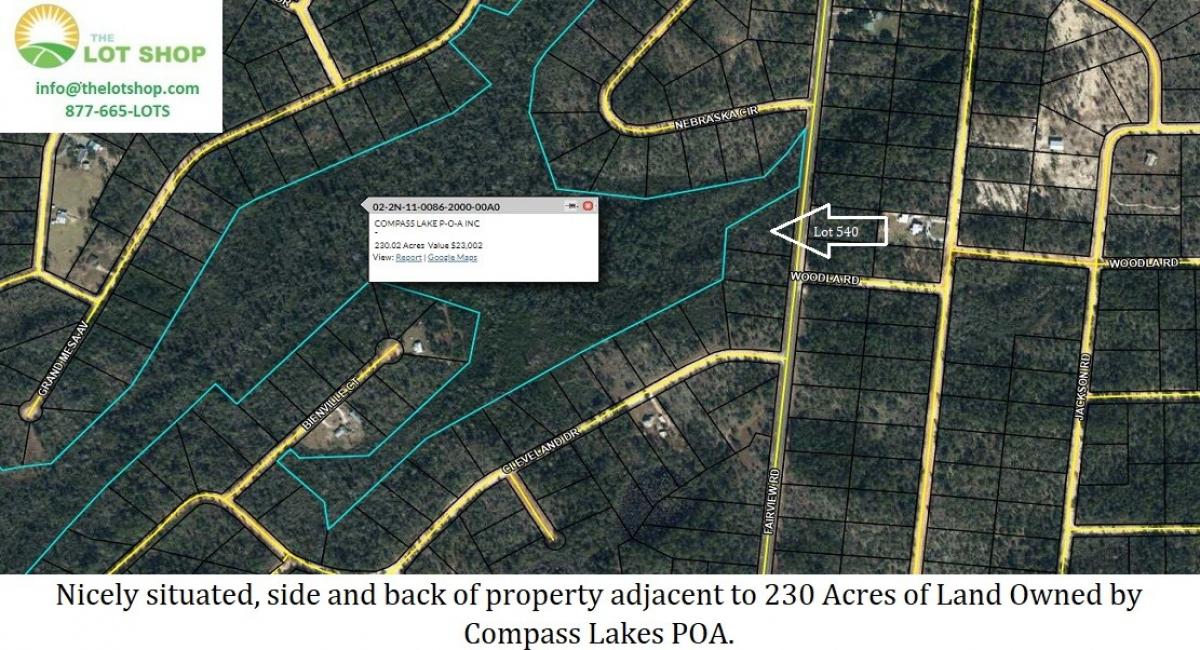 Lot #540 Equestrian Friendly 1.564-acre irregular lot in Compass Lake in the Hills! This lot is rated by FEMA as Zone X - an area of minimal flood hazard and electricity is established on Fairview Rd. This lot is otherwise unimproved and will require well and septic installations. Zoning allows for site-built and modular homes of 1000 sq. ft. or more only, no mobile homes. Camping is allowed on lots for 1-week intervals annually. HOA is optional and is $135/yr. Purchase now before prices rise, there is no time limit to build, and taxes are less than $70/yr. to carry! This area is an outdoor lover’s paradise! Check out this map to see some of the nearby attractions! Jackson County offers parks, trails, sports, kayaking, birding, boating, cave diving, fishing, horseback riding, shopping, restaurants, entertainment, and beautiful Gulf beaches! Step away from the crowds, enjoy the amenities in Compass Lake in the Hills and the abundant beautiful natural areas that surround it. Compass Lake in the Hills is an equestrian friendly planned community that is an outdoor lover’s dream. This 10,000-acre community offers amenities including freshwater fishing and boating. Compass Lake is a spring fed all sports lake with an average depth of 35-40 feet, with a few deep springs reaching 70 feet. All amenities included for property owners to enjoy includes access to two lakes (Compass McCormick), two club houses, RV park, cabin boat rentals, tennis courts, in ground swimming pool at main club house plus more!! Compass Lake in the Hills Facilities available: At the Main Campus – 10 cabins, Compass Lake duplex, 6 RV sites, 2 tent sites w/power and water (additional tenting is available)On Compass Lake – the boat ramp, and the dock (slip rental available)At McCormick Lake – the clubhouse, the pavilions, the swimming area, and the boat ramp. The concession is open Friday thru Sunday, 11am till 7pm during the summer.The swimming pool is open. Fishing boats, fishing kayaks, and fun yaks are available for rent.The disc golf course is open.The driving range is open. Compass Lake is located near Three Rivers State Park, Jackson Blue Springs, The Florida Caverns, Falling Waters State Park, Econfina Creek and Panama Beach. The area around Compass Lake is filled with unique geological treasures including several underwater caves which attract divers to caverns at Merritt’s Mill Pond and along the Chipola River and Holmes Creek, which are also popular areas to kayak. ALL prior year taxes cleared by SELLER Warranty Deed Provided at closing. Disclosure: Appraiser calculations provide for approx. 1.564-Acre Irregular lot. A legal survey would be needed to determine the actual area. Contact the County to check the current zoning information for the specific parcel that you are interested in, as there could be changes to the regulations and/or use permits. Jackson County Planning Zoning Contact Information Jackson County Board of County Commissioners 2864 Madison Street Marianna, Florida 32448 email info@jacksoncountyfl.gov (850) 482-9633 Compass Lake in the Hills Subdivision Zoning Link Jackson County Adventure Map Link Link to area Grocery Stores Link to Area Restaurants TheLotShop.com helps you find Florida lots land fast. Search for land, find a lot you love and close the deal right on your mobile device! Select lots offer our no qualifying, guaranteed finance option to allow you to diversify your portfolio at wholesale prices! Search by Map, County, Features, Uses (Tiny Home, Manufactured Home, Waterfront, etc.) on our Advanced Search Page! Secure your FL land ownership dream today, buying property has never been this easy they aren't making more land!