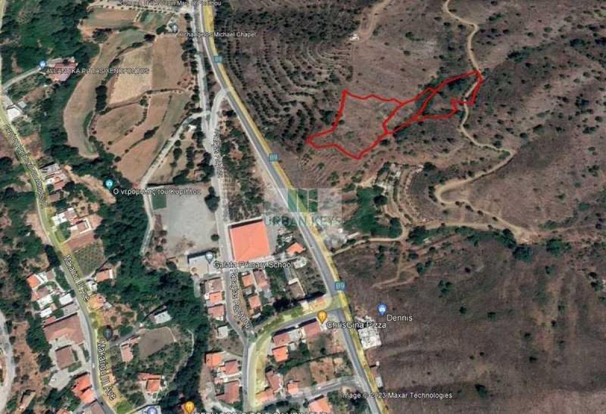 Residential field (3 continuous fields) in a quiet and beautiful area in the community of Galata, Nicosia district. It is located about 300m northeast of the centre of the community and about 50m east of the main Nicosia-Troodos road. The properties as one entity form part of a mountain with uneven surfaces and downhill slopes.It is noted that the area of the property is characterized by a beautiful natural environment with unobstructed views of the mountains of the area.